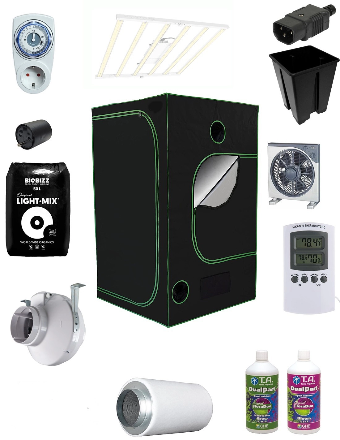 Kit de culture indoor d'une dimensions de 120 x 120 x 200cm avec un panneau LED Mars Hydro FC-E 4800 de haute qualité avec tout le matériel pour faire une culture en intérieur.