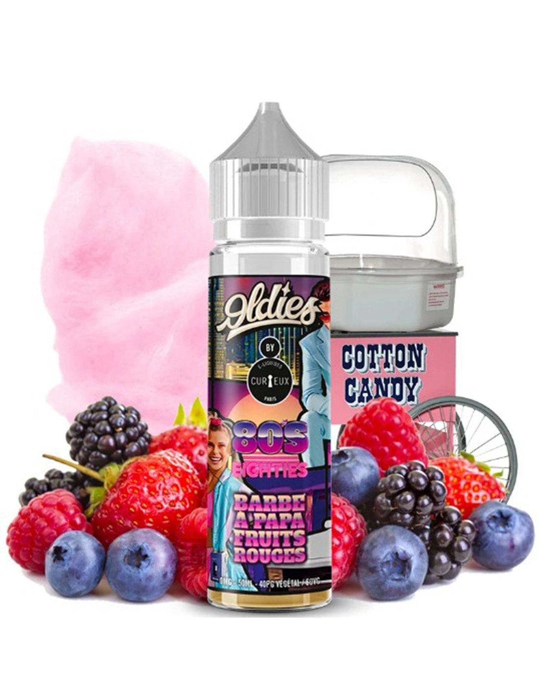 Eighties, néons lumineux, musiques synthétiques, vêtements fluo, bienvenue dans les années 80 ! 1981, Miami, croc-top, chemise over size ouverte, du haut de ses patins à roulettes, Kate savoure une gigantesque barbe à papa saveur fruits rouges. Une gourmandise devenue intemporelle !