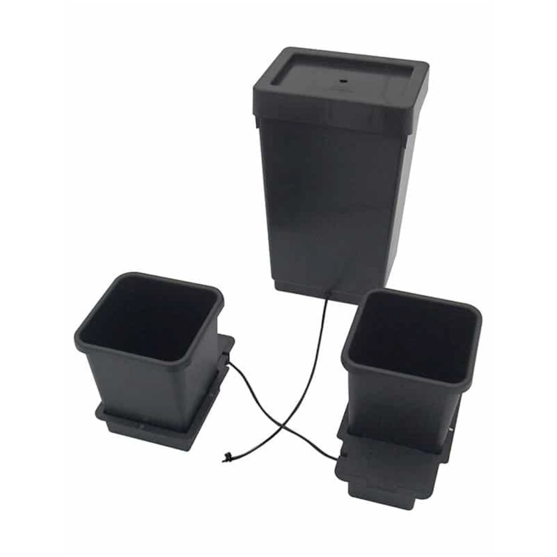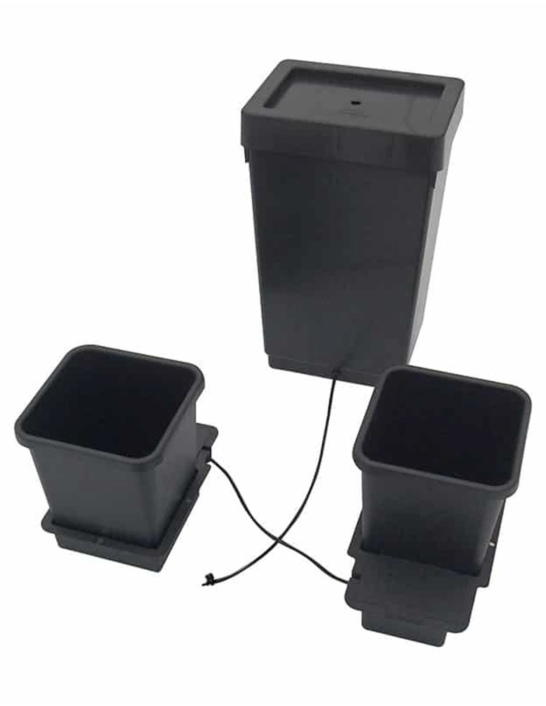 Hydroponisches Bewässerungssystem für den Innen- und Aussenbereich, bestehend aus einem Reservoir und 2 Module eines 15L Topfes.