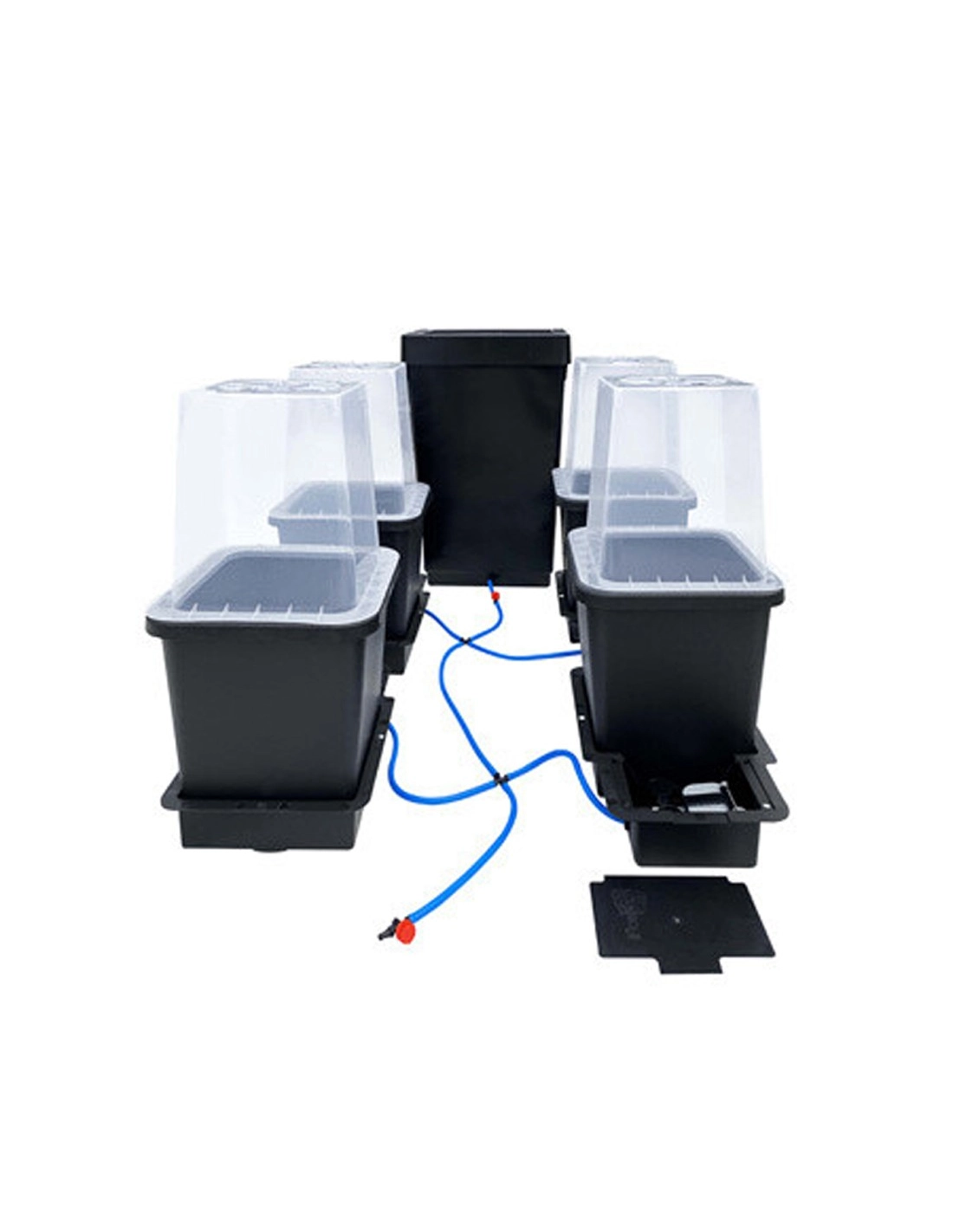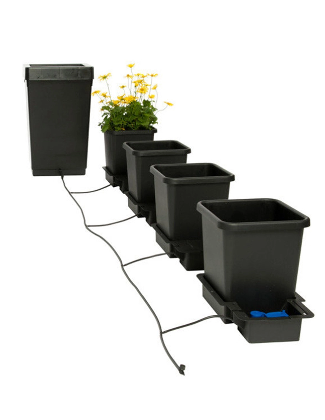 Hydroponisches Bewässerungssystem für den Innen- und Aussenbereich, bestehend aus einem Reservoir und 4 Module eines 15L Topfes.