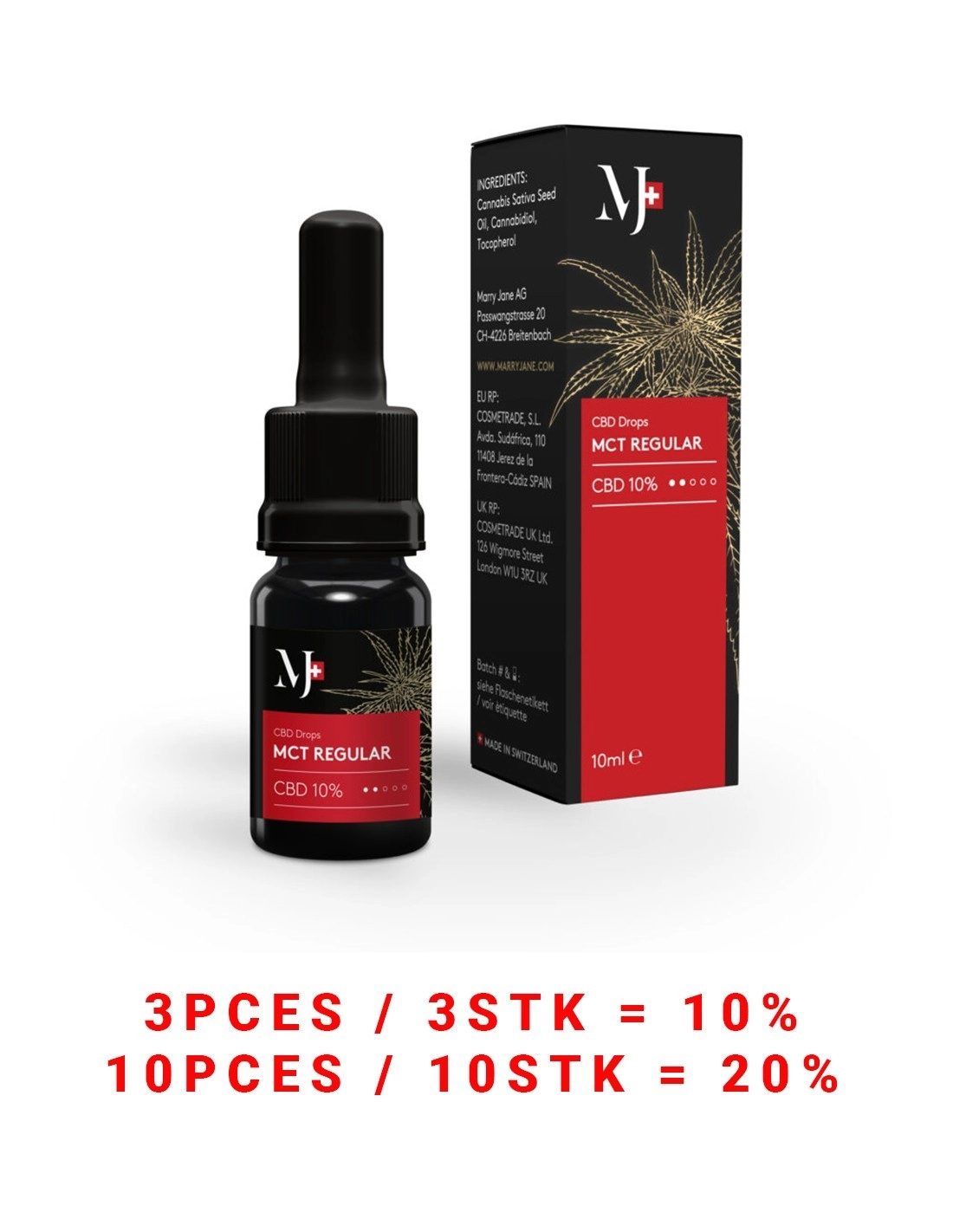 - 10-ml-Flasche mit 10 % Extrakt aus hochwertigem, in der Schweiz angebautem Hanf