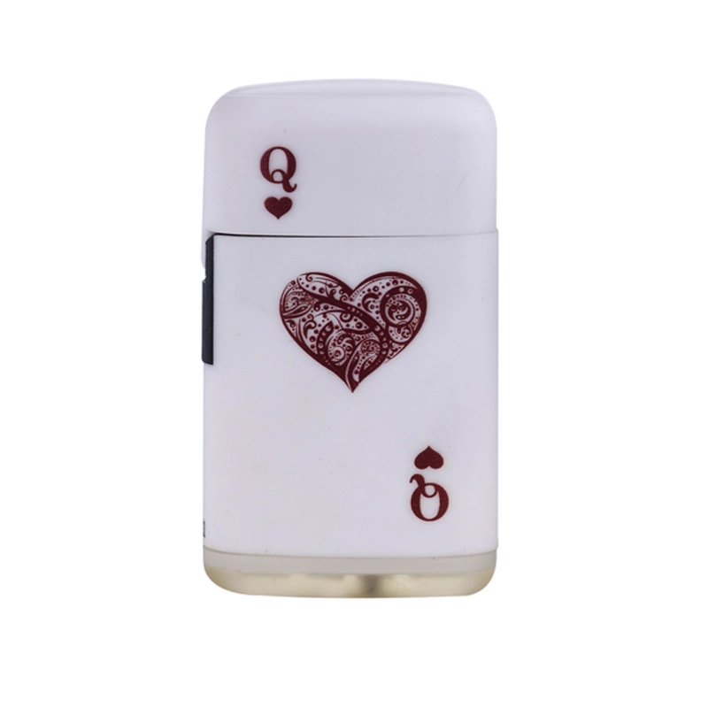 Nachfüllbares Sturmfeuerzeug in einer Kunststoffhülle mit der Herzdame auf der Vorderseite.