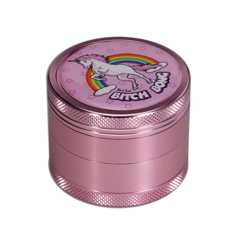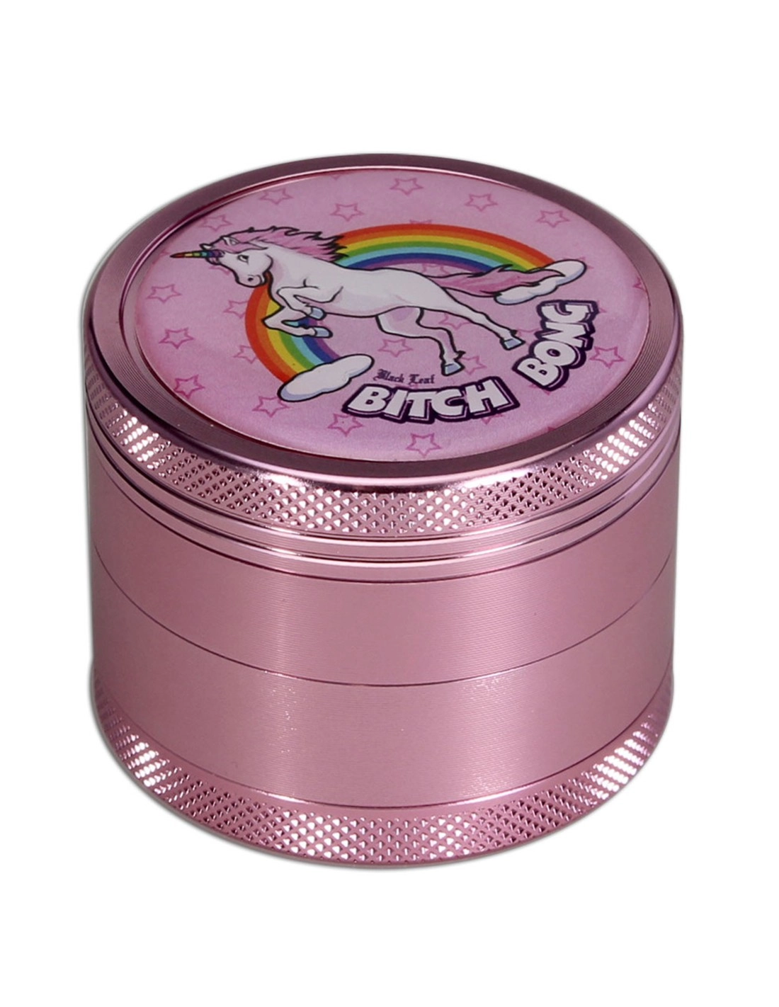 Der 4-teilige BITCH BONG Grinder von Black Leaf® bezaubert mit dem wunderschönen BITCH BONG-Chip im Deckel, welches aus der Feder unseres Designers Sly stammt.