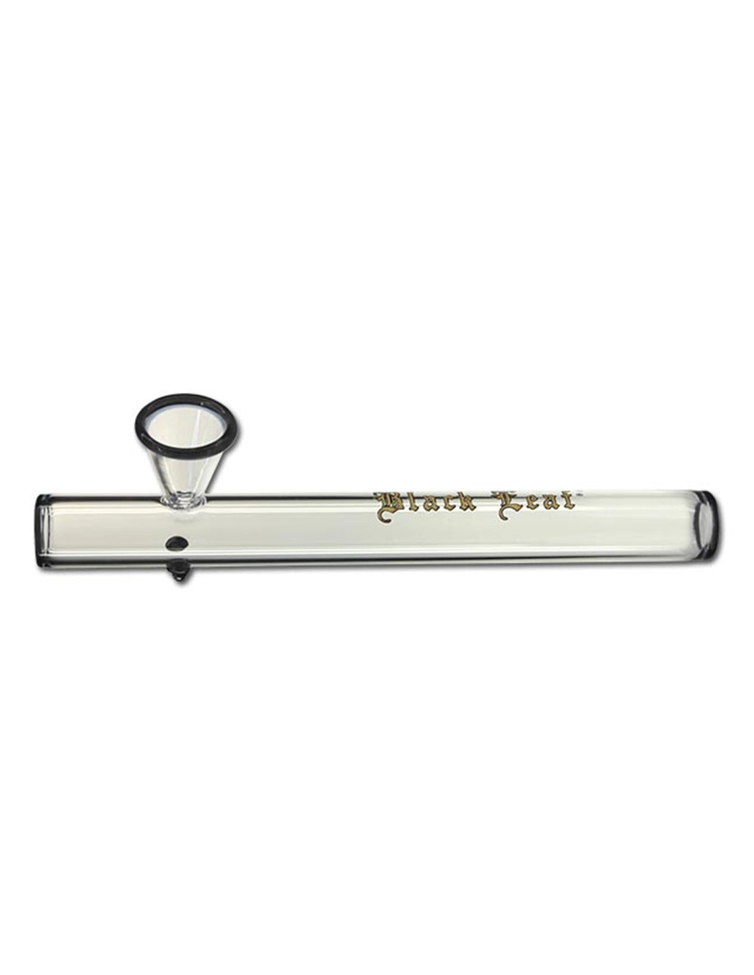 Glaskawum mit schwarzem Black Leaf Schriftzug und schwarzen dekorativen Glasteilen. Der Durchmesser beträgt 200mm.