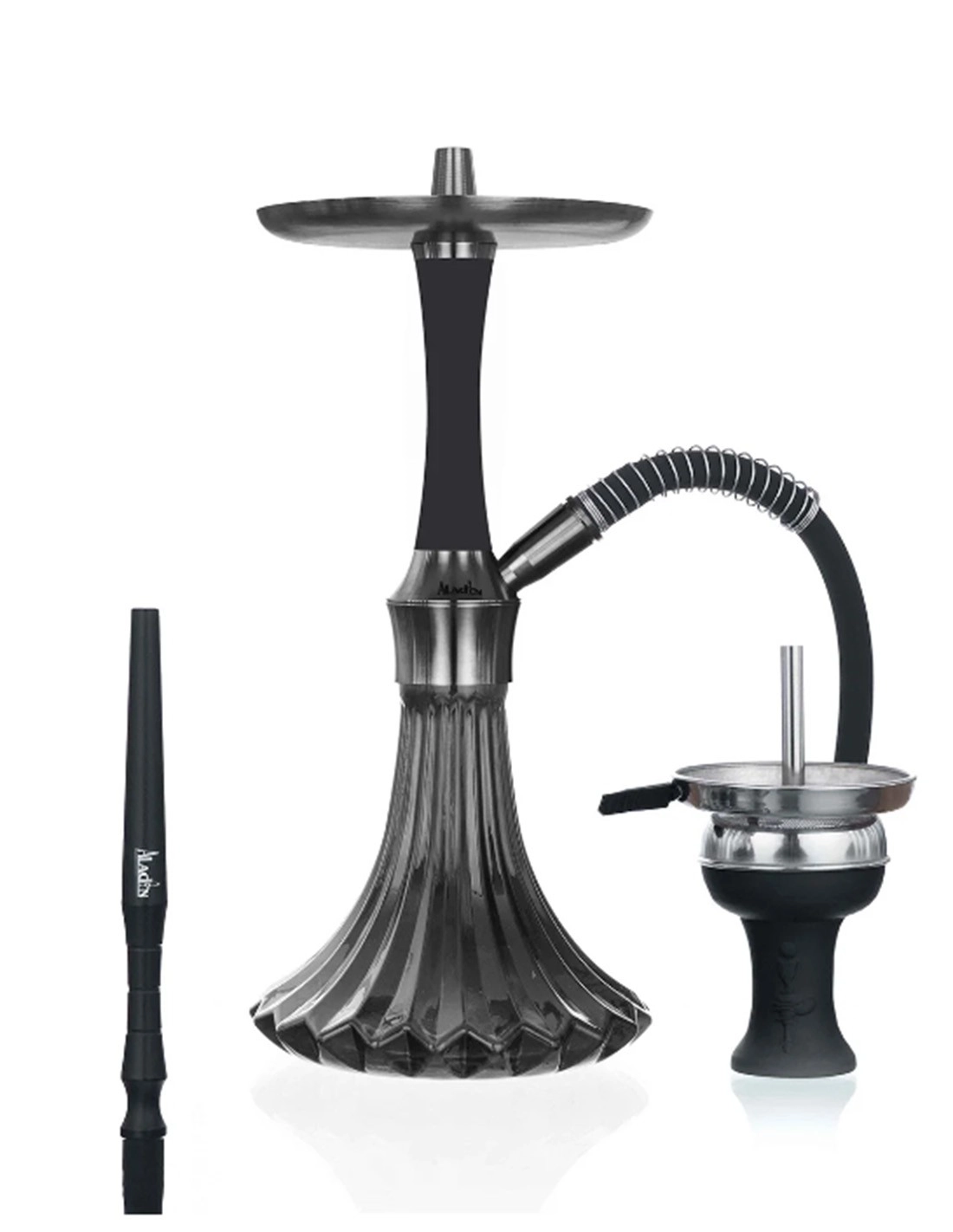 - Das Glas ist sehr massiv und sorgt dafür, dass die Shisha sehr stabil steht. Dank des bald zusätzlich erwerbbaren Steckbowl-Adapters kann die Shisha mit allen Steckbowls verwendet werden.