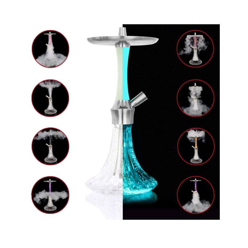 - Das Glas ist sehr massiv und sorgt dafür, dass die Shisha sehr stabil steht. Dank des bald zusätzlich erwerbbaren Steckbowl-Adapters kann die Shisha mit allen Steckbowls verwendet werden.