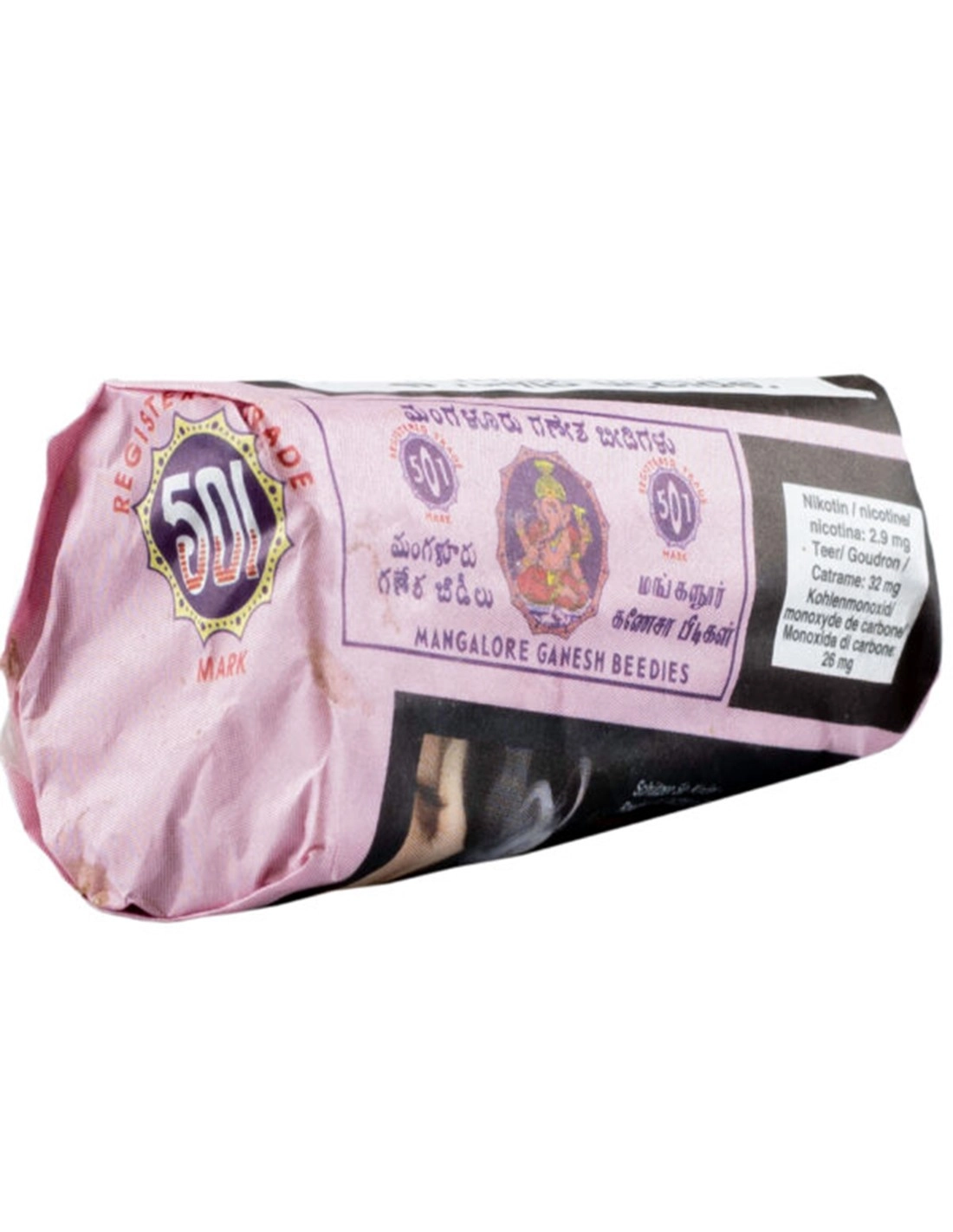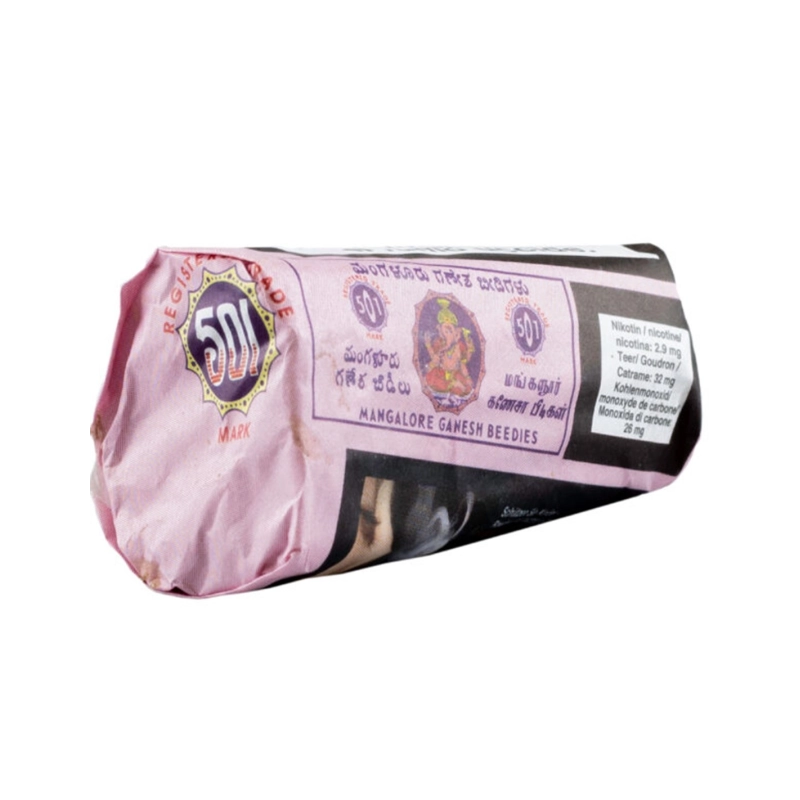 Handgemachte, indische Zigarette. Das Blatt des tropischen Tendu Strauches dient als Deckblatt und umhüllt den Tabak.
