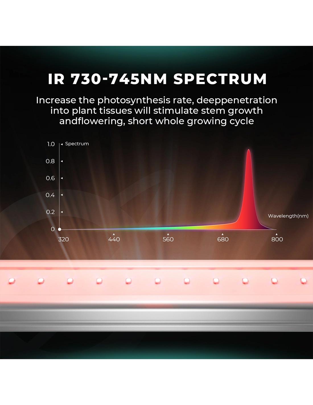 Gezieltes UVA-Spektrum von 730 bis 745 nm: Wurde entwickelt, um eine zusätzliche UV-Beleuchtung zur Verbesserung der Qualität der Pflanzenerträge zu gewährleisten.