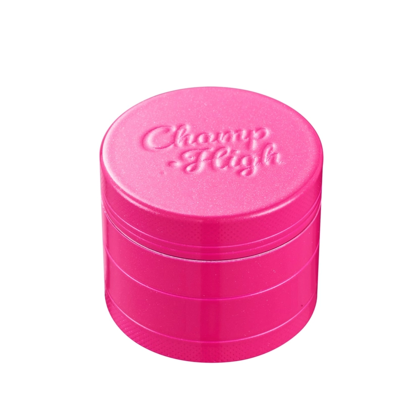 4-teiliger rosafarbener Grinder der Marke Champ High aus Aluminium mit einem Durchmesser und einer Höhe von 50 mm. Dieser Grinder ist mit diamantförmigen Zähnen ausgestattet, die einen feinen und perfekten Schnitt deiner Kräuter ermöglichen.