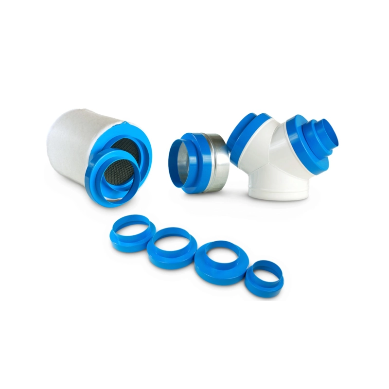 Durch die passgenauen Reduktionen können alle Anschlüsse auf jede Filtergrösse simuliert werden. Die Reduktionen können auch zur Verjüngung von Y-Stücken oder Wandmuffen verwendet werden.