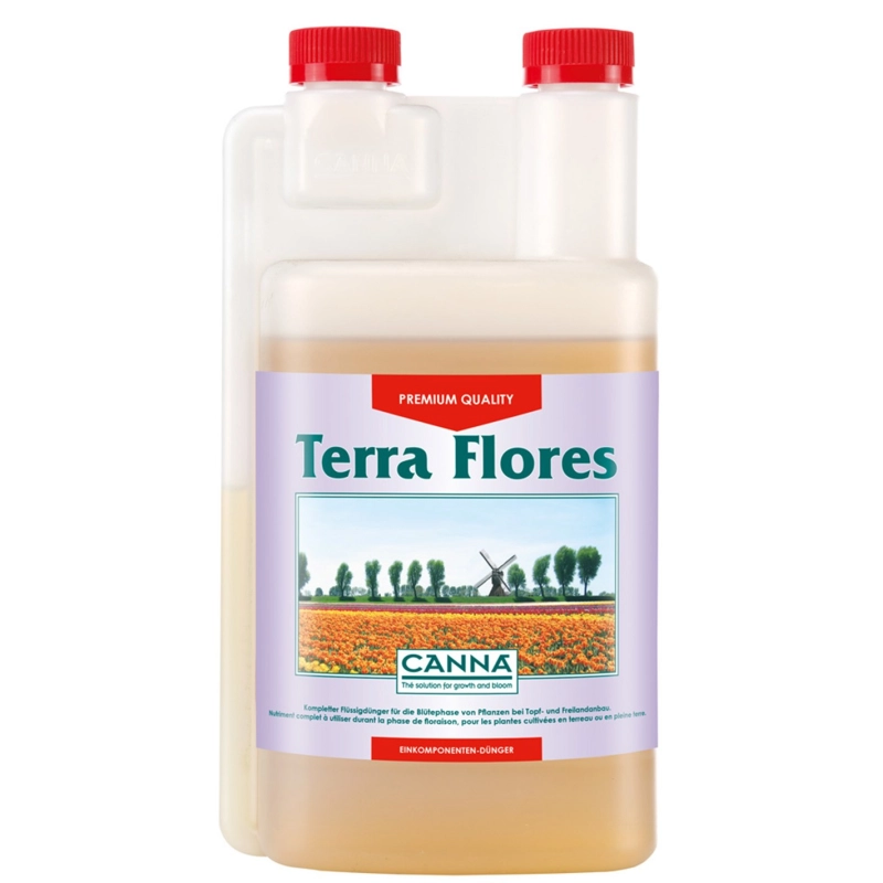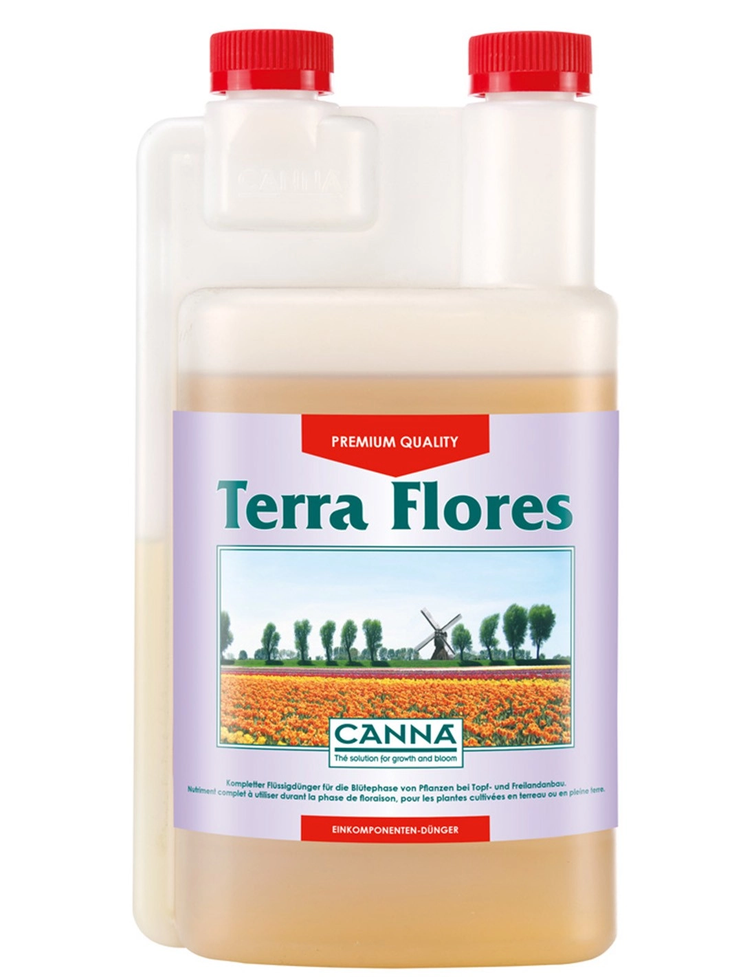 - CANNA Terra Flores ist reich an chelierten Spurenelementen die in einer leicht absorbierbaren Form vorliegen um sofort aufgenommen zu werden. Dies ermöglicht die Zucht von großzügigen Blütenständen und üppigen Früchten.