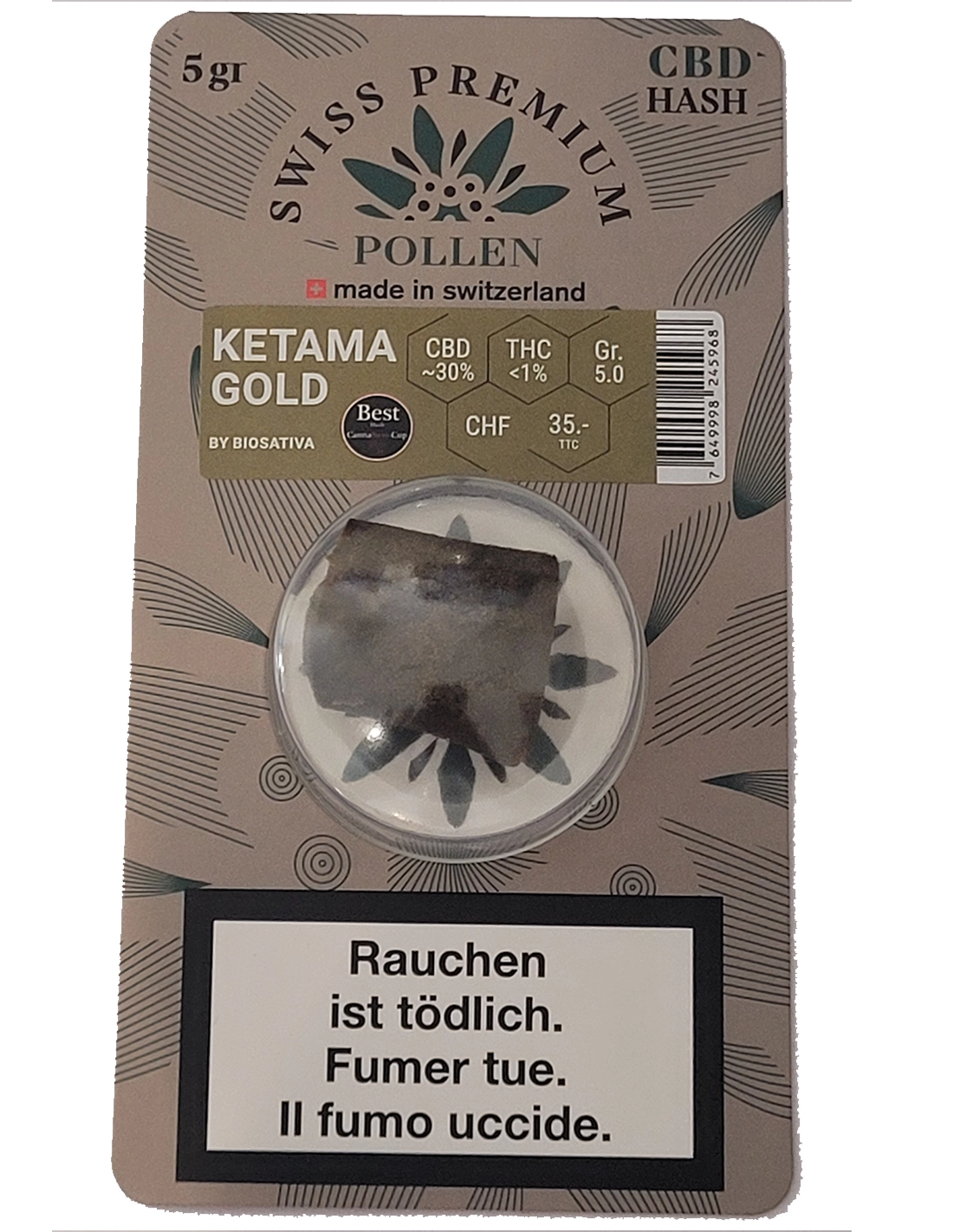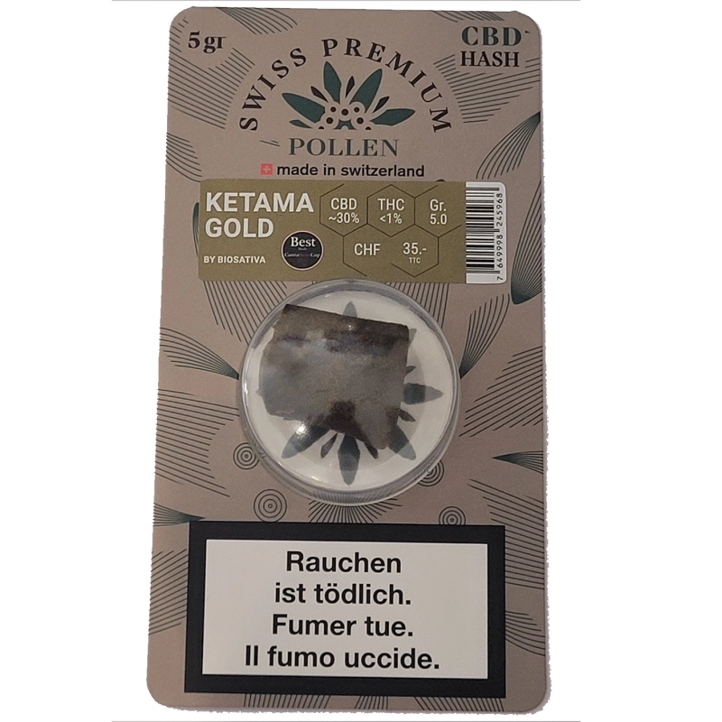 Biosativa's "Ketama Gold" ist ein erstklassiges CBD-Haschisch und Gewinner des Canna Swiss Cup 2024.