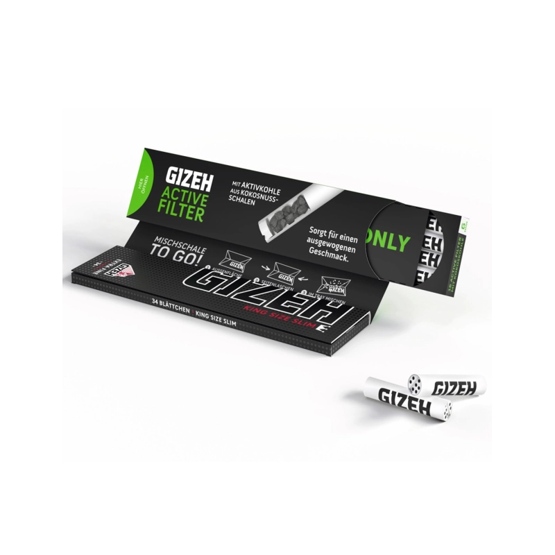 Die extra feinen, fast transparenten Blättchen haben ein Flächengewicht von 14 g/m2 und sorgen für puren und unverfälschten Genuss. Zudem brennen sie sehr langsam ab und gehen aus, wenn nicht daran gezogen wird. Die beliebten Aktivkohlefilter im Slim-Format (6mm Durchmesser) wurden speziell für den King-Size-Genuss entwickelt: Die gereinigte Aktivkohle im Inneren filtert Schadstoffe und sorgt für einen ausgewogenen Geschmack.