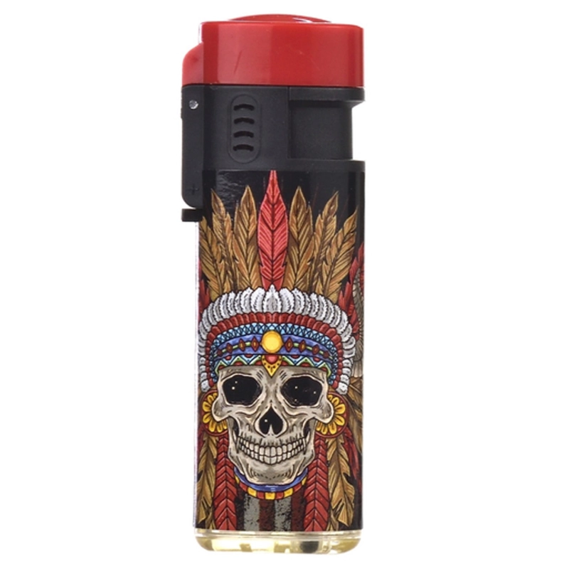 Das Jet Flame Feather & Skull Red ist ein Sturmfeuerzeug, mit dem du deine Zigaretten, Joints oder andere Dinge bei Wind und Wetter anzünden kannst. Zudem ist es stilvoll mit einem Totenkopf mit Indianerfedern verziert. Dieses Feuerzeug ist mit Gas nachfüllbar.