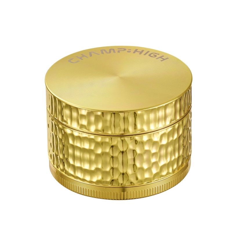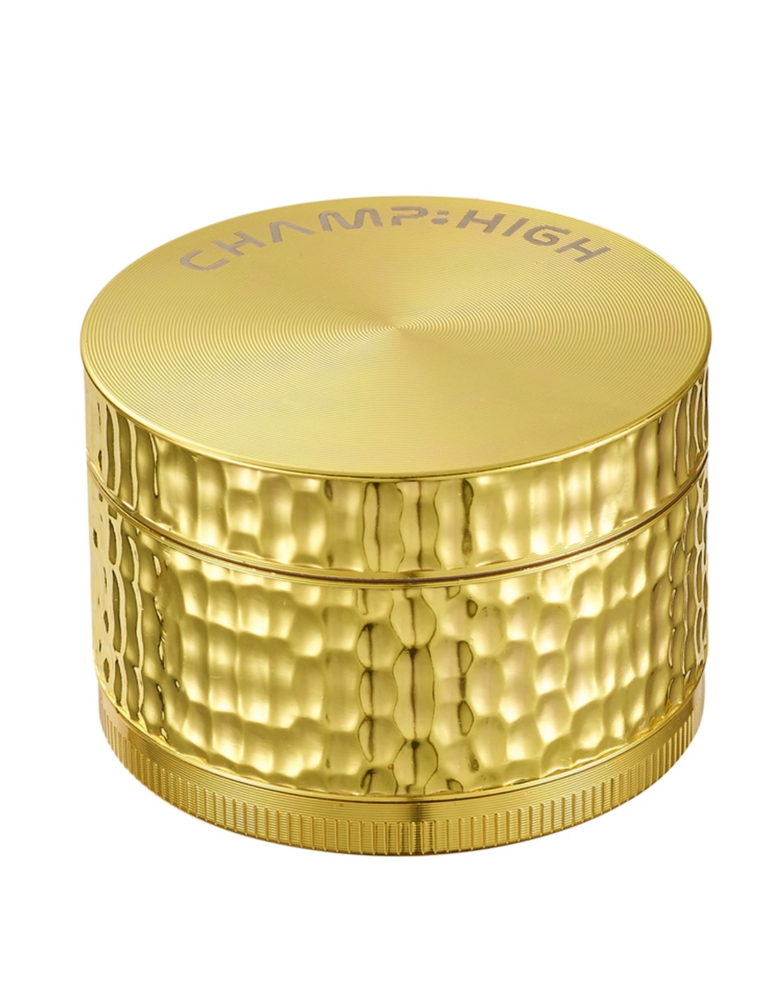 4-teiliger Grinder der Marke Champ High aus gehämmertem Aluminium in der Farbe Gold. Er besitzt einen Durchmesser von 55 mm sowie 4 Kammern, um den Pollen deiner Lieblingskräuter zu gewinnen.