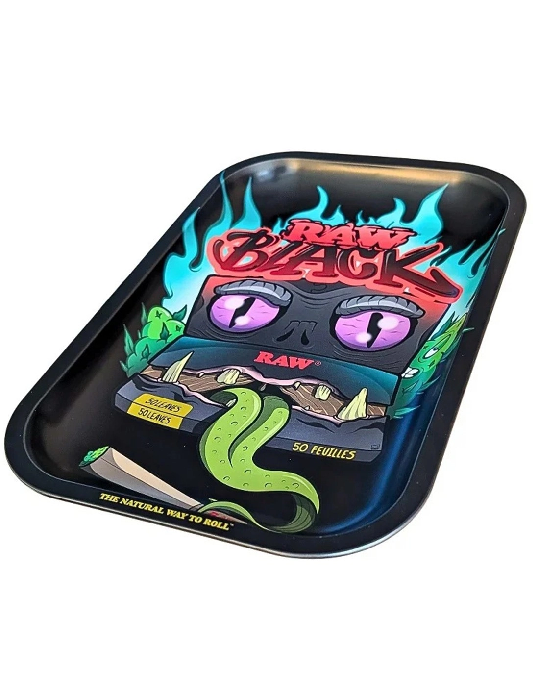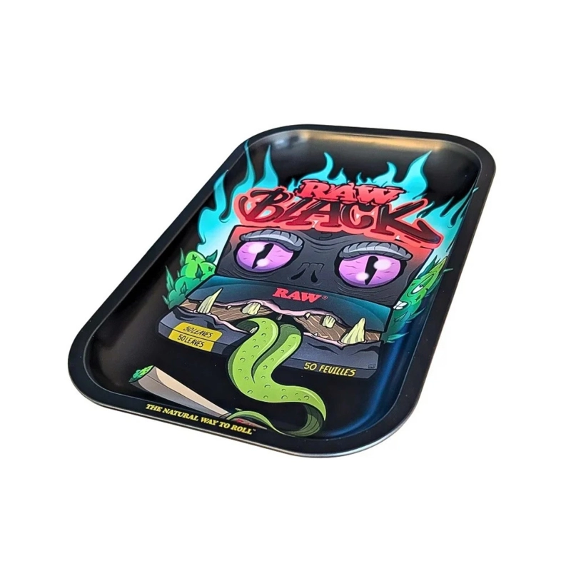 Raw Black Monster Mischbrett in den Massen 17,5 x 27,5 cm. Dieses ultracoole Mischbrett mit der Abbildung einer Packung Papers, die sich in ein Monster verwandelt, das frech die Zunge herausstreckt, dient als Unterlage zum Drehen von Zigaretten und Joints. So gehen keine Tabakkrümel mehr daneben.