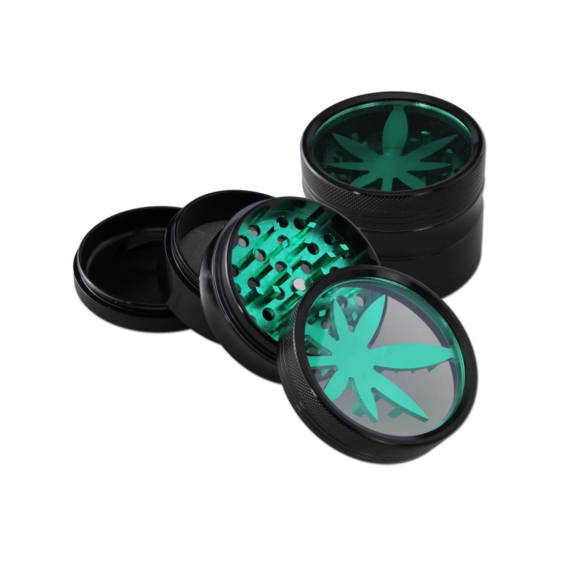 Der Durchblicker - 4-teiliger Aluminium-Grinder mit Glasdeckel. So behält man sein Mahlgut immer schön im Auge.