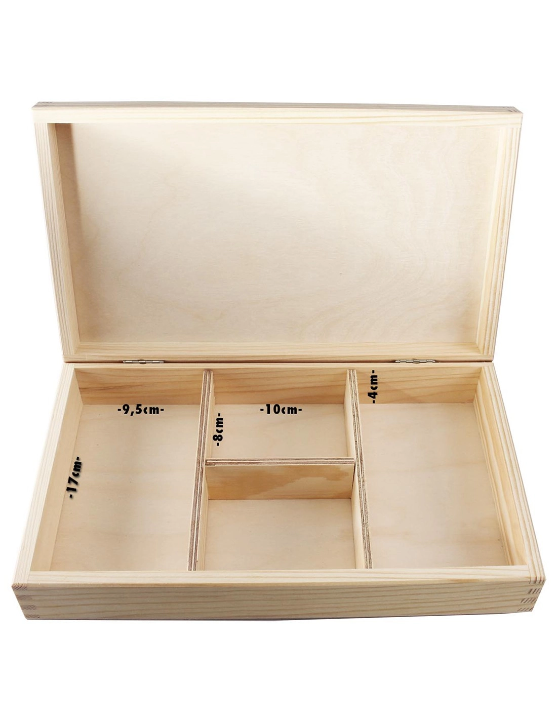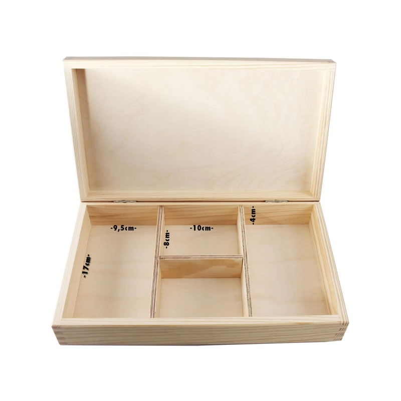 Die praktische Holzkiste lässt sich ebenfalls unauffällig im Regal, unter dem Bett u. ä. aufbewahren. Und wenn man alles zusammen an einem Platz verstaut, erspart man sich jede Menge lästige Sucherei. Für mehr Übersichtlichkeit ist das Innere in vier Fächer unterteilt. Zwei Fächer haben die Maße 9,5 x 17cm, die anderen zwei 10 x 8cm. Die Tiefe beträgt bei allen 3,9cm zuzüglich knapp 2cm Deckelspielraum. Mit Black Leaf®- In Weed We Trust-Branding auf dem Deckel.