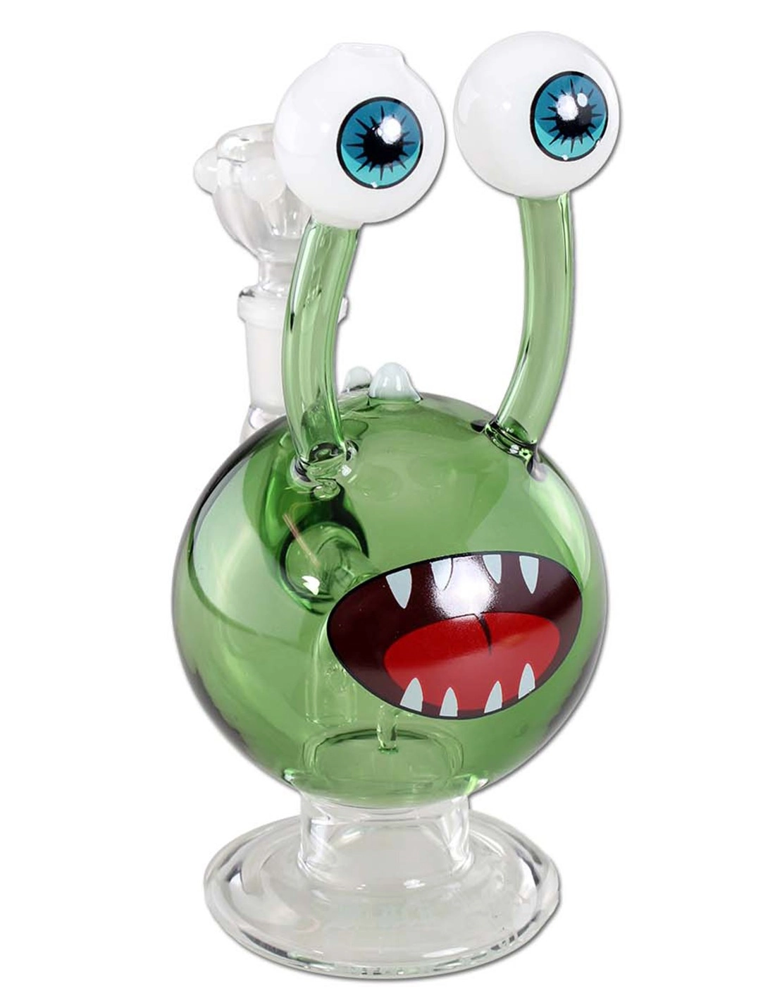 Niedliche, kleine Monster-Glaspfeife von Black Leaf®. Ein Perkolator im Monsterbauch sorgt dafür, dass der Rauch abkühlt und gefiltert wird. Mit passendem Flutschkopf.