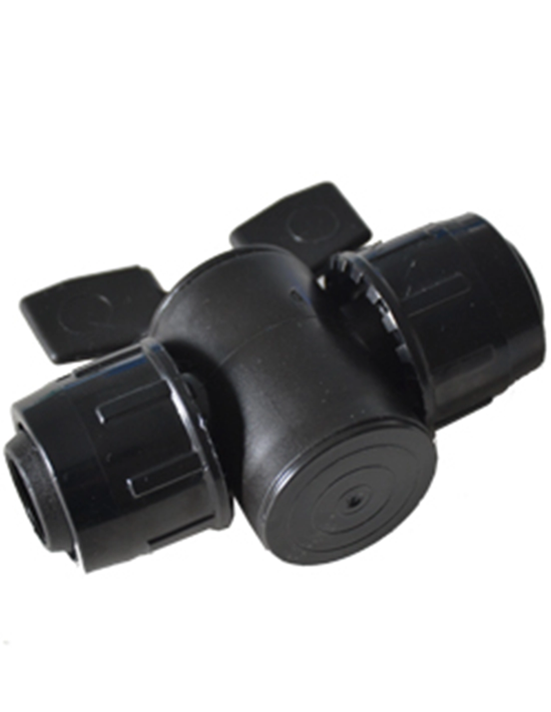 Absperrventil mit Schmetterlingsgriff für die Installation eines grossen Tropfsystems. Er besteht aus hochwertigem Kunststoff und ist UV-beständig.
