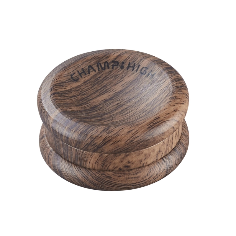 Zweiteiliger Grinder mit einem Durchmesser von 50 mm ohne Pollensieb, der dunklem Holz perfekt nachempfunden ist. Im Gegensatz zu den üblichen Holzgrindern besteht das Innere komplett aus Metall.