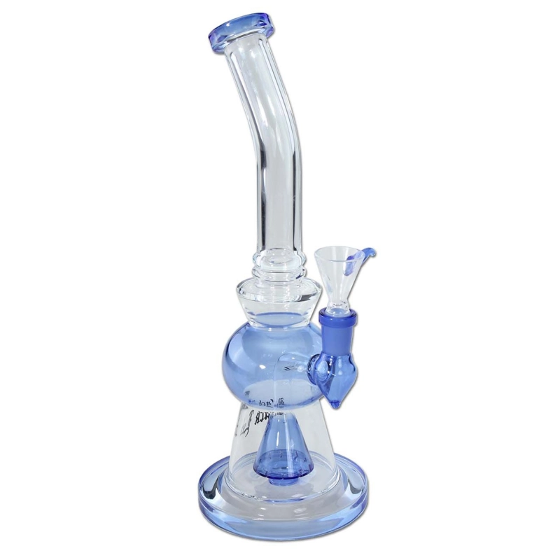Diese schöne Glasbong mit gefärbten Komponenten von Black Leaf® hat eine mittlere Größe. Der Perkolator bringt das Bongwasser beim Bongrip ordentlich zum Blubbern, wobei der Rauch abkühlt. Gleichzeitig wird der Rauch dabei auch noch gefiltert, damit die Hits nicht zu kratzig sind.