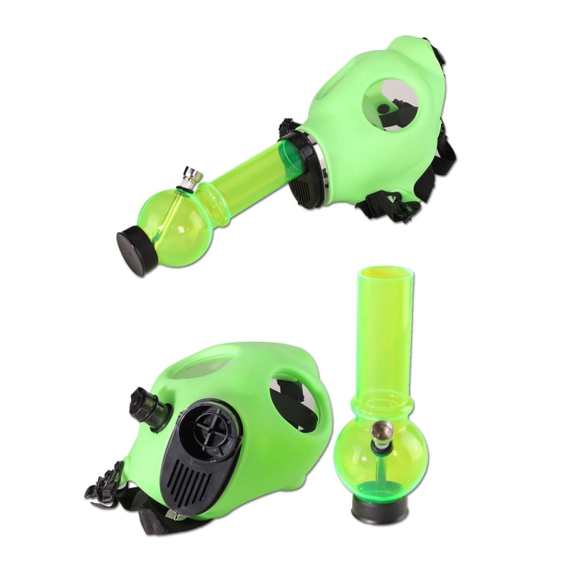 Ein Schraubventil sorgt für den Frischluftzufuhrkick. Daher ist die Gasmaskenbong der ultimative Partyspaß oder eine lustige Abwechslung im Alltag. Durch das elastische Gurtsystem ist die Maske größenverstellbar und passt für jede Kopfgröße. Zum Reinigen lässt sich die kleine Acrylbong leicht abziehen. Dieses Gasmaskenbong-Modell leuchtet übrigens auch im Dunkeln!