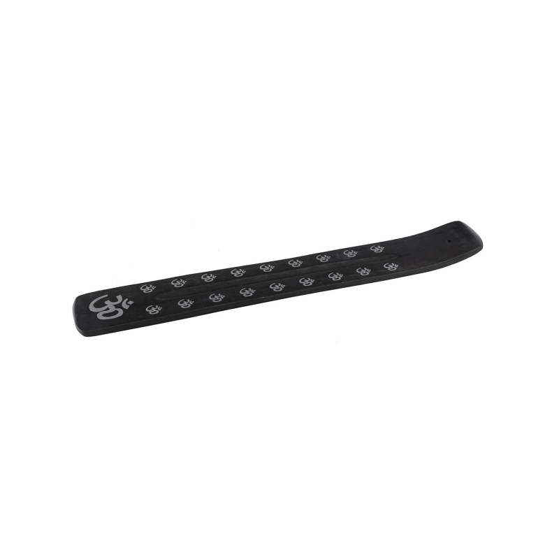 Räucherstäbchenhalter OM aus stabilem und nachhaltigem Mangoholz, welches bunt gefärbt wurde. Jeder Halter hat eine Öffnung für ein Räucherstäbchen, in der das Räucherstäbchen leicht schräg steht, damit die Asche in die Rinne fällt.