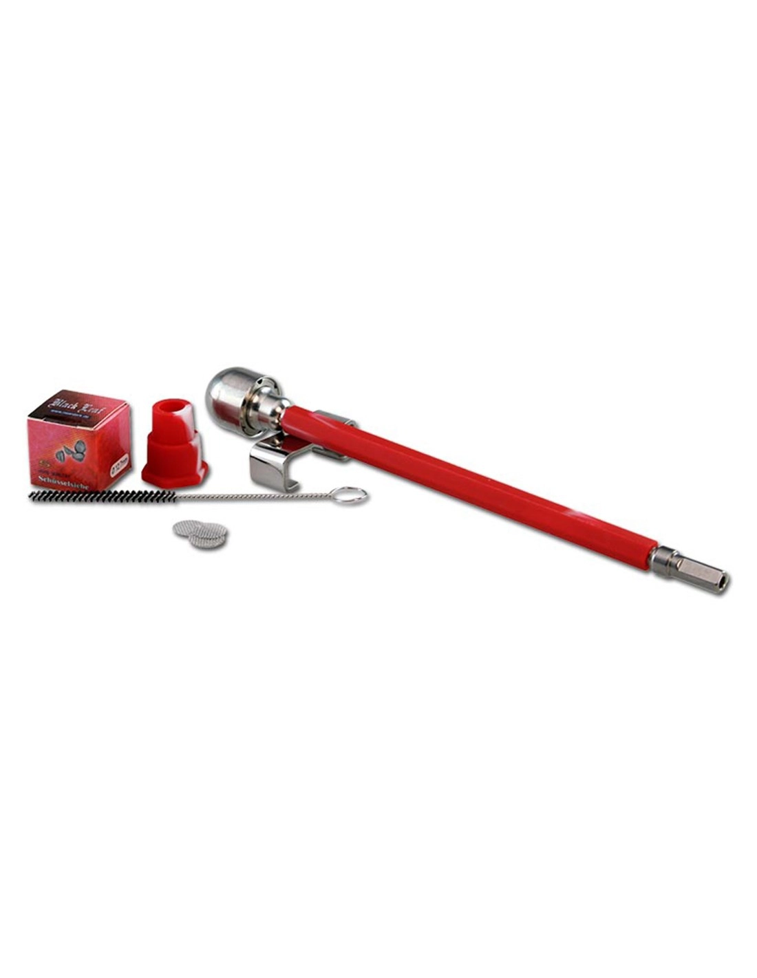 Der 'Wand Vape' von Black Leaf® ist ein mechanischer Handvaporizer, den man aber auch mittels des beiliegenden Bongadapters aus Silikon in eine Bong stecken kann. Der Adapter passt auf die Schliffe NS 14 sowie NS 19. Der Zauberstab-Vaporizer ist vom Mundstück bis zur Heizkammer (für Kräuter) aus wärmeleitendem Edelstahl. Damit die Finger nicht zu heiß werden und als Schutz für eine Glasbong, ist das Zugrohr mit Silikon ummantelt.