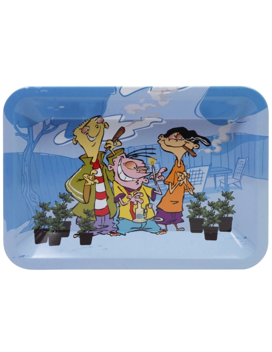 Blaues Mischbrett aus Metall mit total bekifften Figuren. Dieses Mischbrett mit den Maßen 18 x 12 cm ist perfekt, um beim Drehen eines Joints zu vermeiden, dass der Mix überall landet.