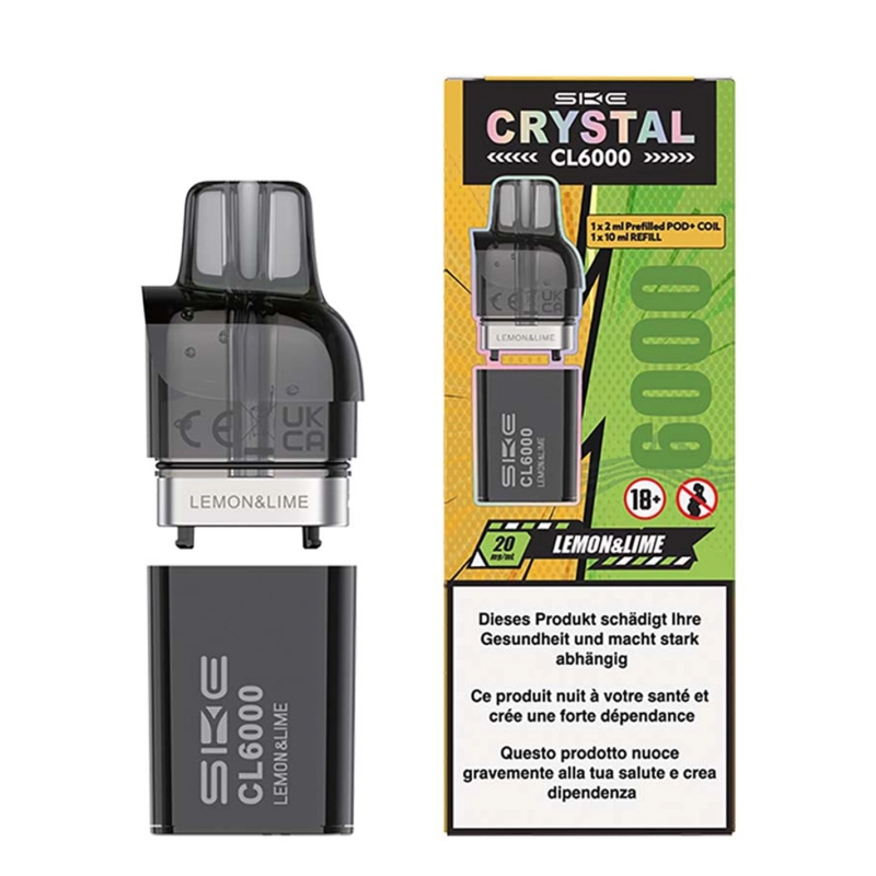 Die Kartuschen für den Crystal CL6000 mit dem Geschmack Lemon Lime bieten dir ein volles Aroma mit einem intensiven Throat Hit, welcher dem einer Tabak Zigarette gleicht. Mit dem verbauten Liquid von insgesamt 12ml sollten gemäss Hersteller bis zu 6000 Züge pro Kartusche möglich sein. Das hängt aber natürlich von deinem persönlichen Dampfverhalten ab. Wir haben die wichtigsten Facts der cleveren Hybrid Liquid Pods für dich zusammen getragen