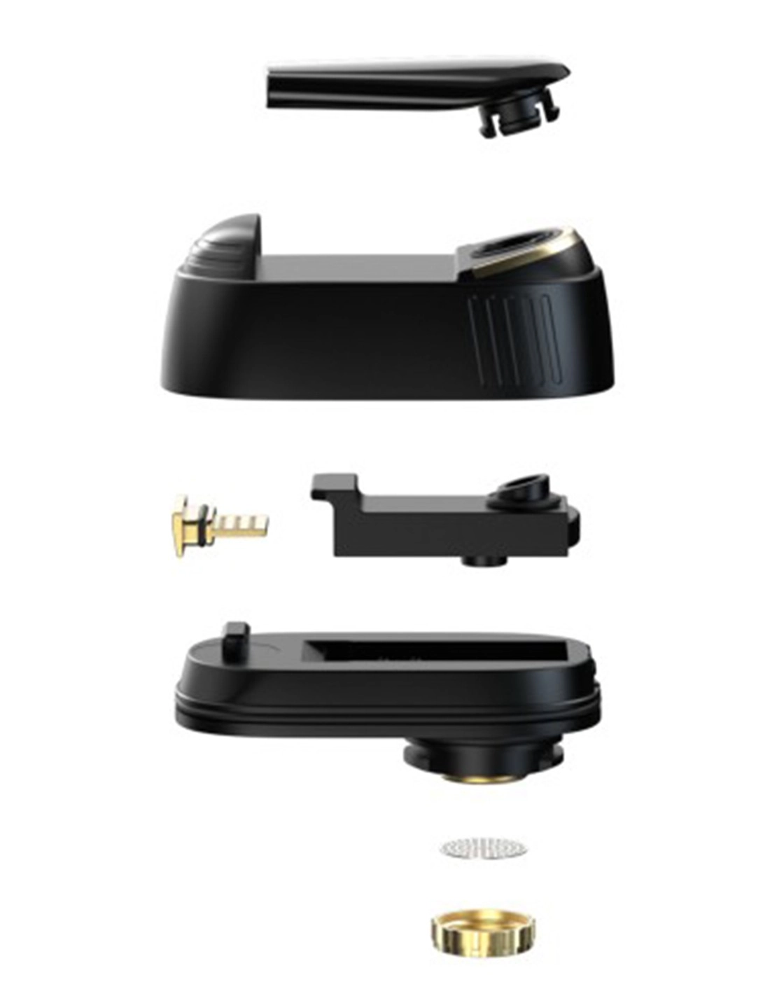 Es enthält alle wichtigen Komponenten, wie die Mundstückbasis, ein Keramikmundstück, einen Dichtungsring mit integriertem Sieb und das fortschrittliche COOLSCREEN® Keramik-Filtermodul mit vergoldetem Filter.