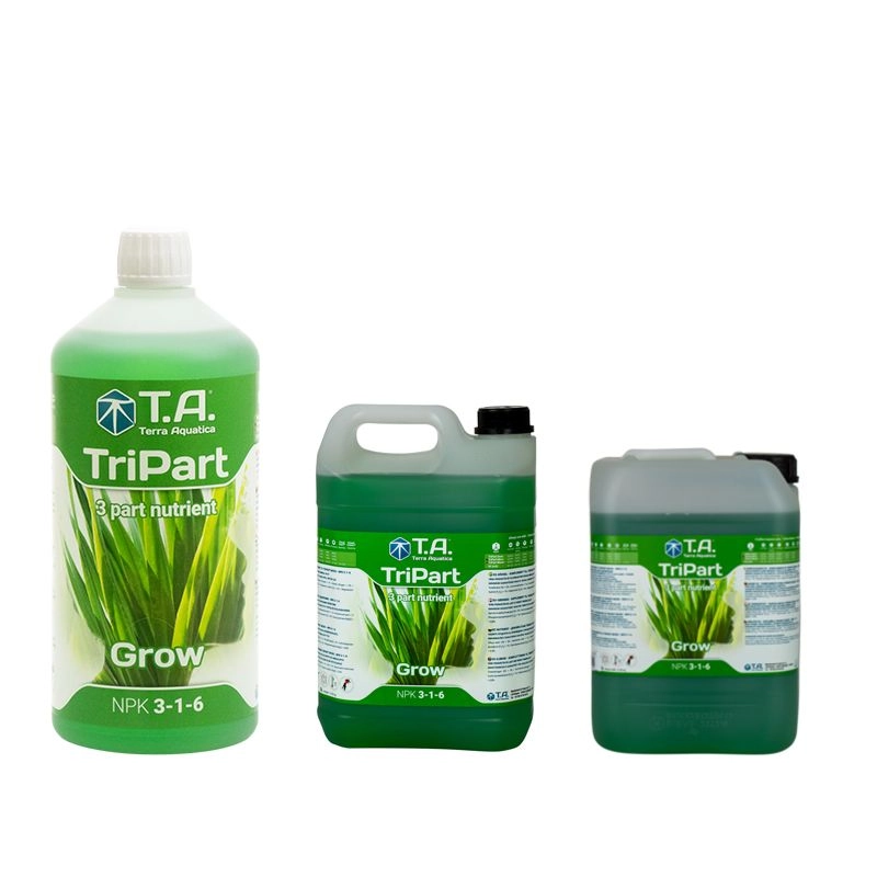 TriPart® Grow : regt den Strukturaufbau und das vegetative Wachstum an, unterstützt die Ausbildung kräftiger Wurzeln und ist in der TriPart® der Hauptlieferant für Stickstoff, Kalium und Sekundärmineralien. Während des Wachstums in größeren, während der Blüte in geringeren Mengen verabreichen.