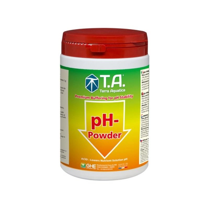 Das einzige als Pulver erhältliche pH-Korrekturmittel des Marktes Branchenweit einzigartig : pH- Pulver, im Lieferzustand chemisch inaktiv, entfaltet seine Säurewirkung erst nach dem Verrühren mit Wasser. Die pH-Wert-Korrektur ist eine der Hauptaufgaben des Indoor Gärtners. Bei richtig eingestelltem pH sind Mineralstoffe pflanzenverfügbar und Chelate stabil. Die Versendung säurehaltiger pH-Senker auf dem Postweg ist jedoch riskant und deshalb in manchen Ländern verboten. Mit seinem versand- und transportfreundlichen pH- Pulver hat Terra Aquatica eine patente Lösung für dieses Problem entwickelt.