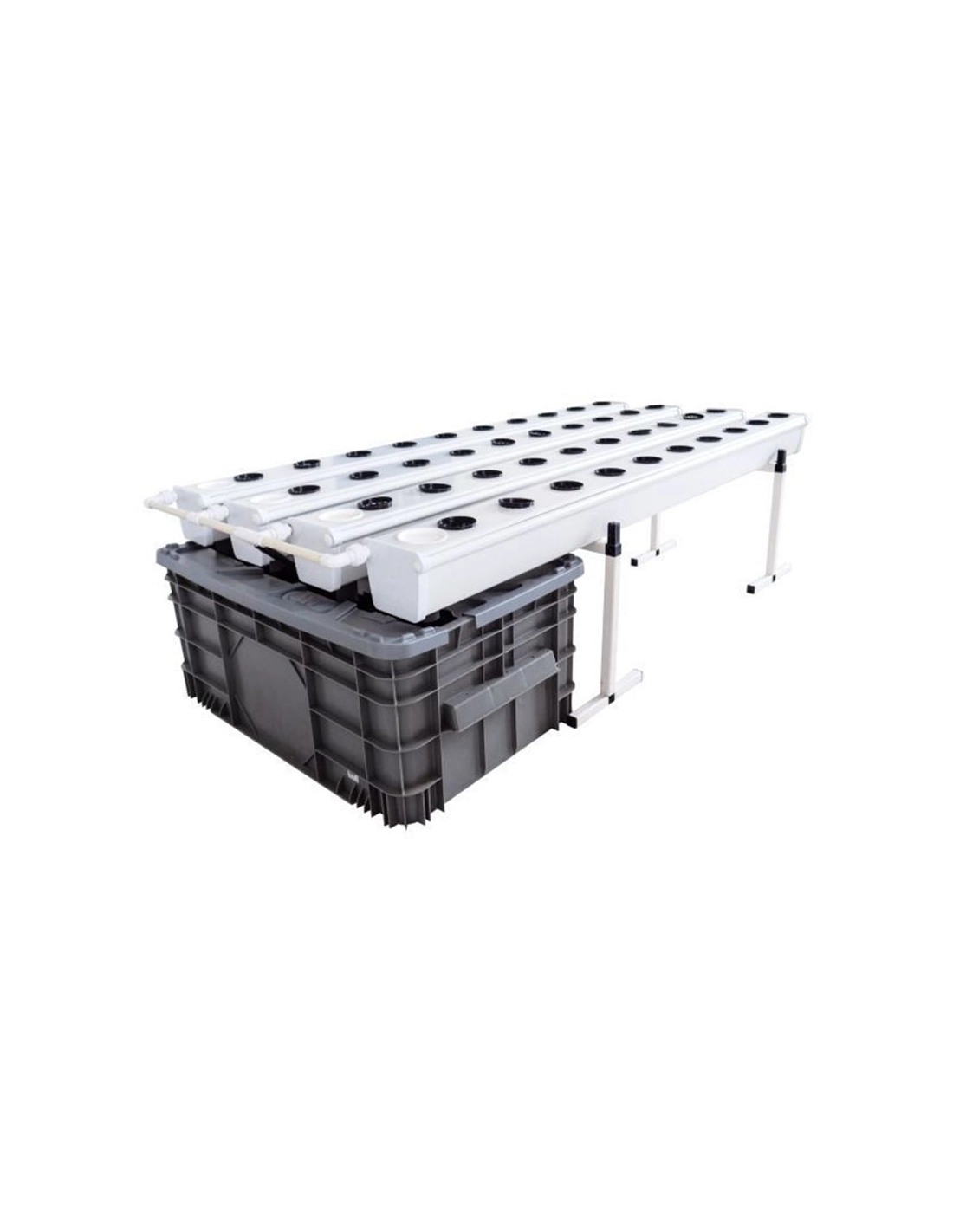 GrowStream®-Systeme bestehen aus einem Vorratsbehälter mit einer einfachen Wasserpumpe, die das Wasser zur Pflanzrinne pumpt, wo es in präzise gesteuerten Zeitintervallen eingespritzt wird. Anschließend fließt die Nährlösung durch das Ablaufrohr zurück und versorgt den Vorratsbehälter ohne aufwändige Steuertechnik oder eine Vielzahl von Luftpumpen optimal mit Sauerstoff.