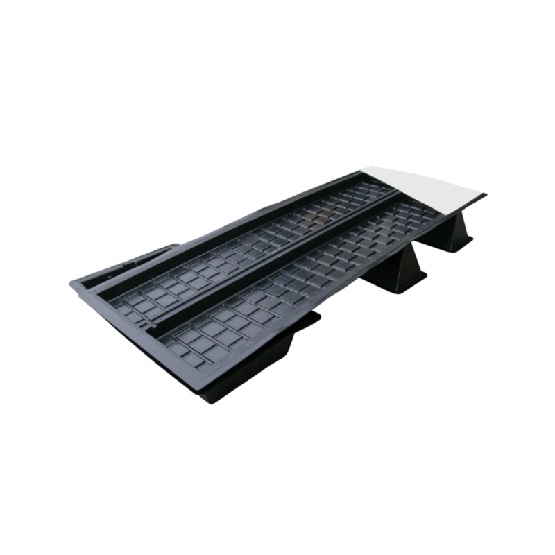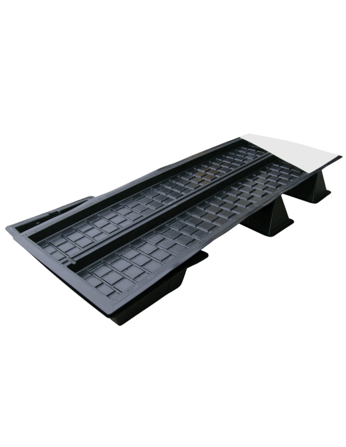 Das Multi-Duct ist ein hydroponisches System, das für den grossflächigen Anbau entwickelt wurde. Es besteht aus einem langen Anbautablett, das mit Bewässerungskanälen und einem drainierenden Boden ausgestattet ist. Die Keimlinge werden einfach auf das Tray gesetzt, wenn die Wurzeln ausserhalb des Steinwolleblocks erscheinen.