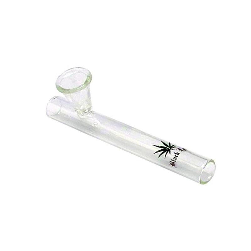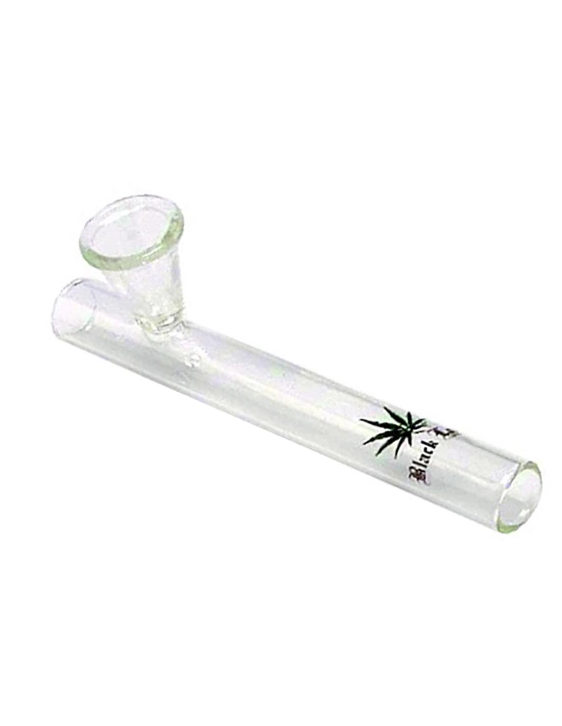 Durchsichtige Glaspfeife,Black Leaf Länge 12 cm.