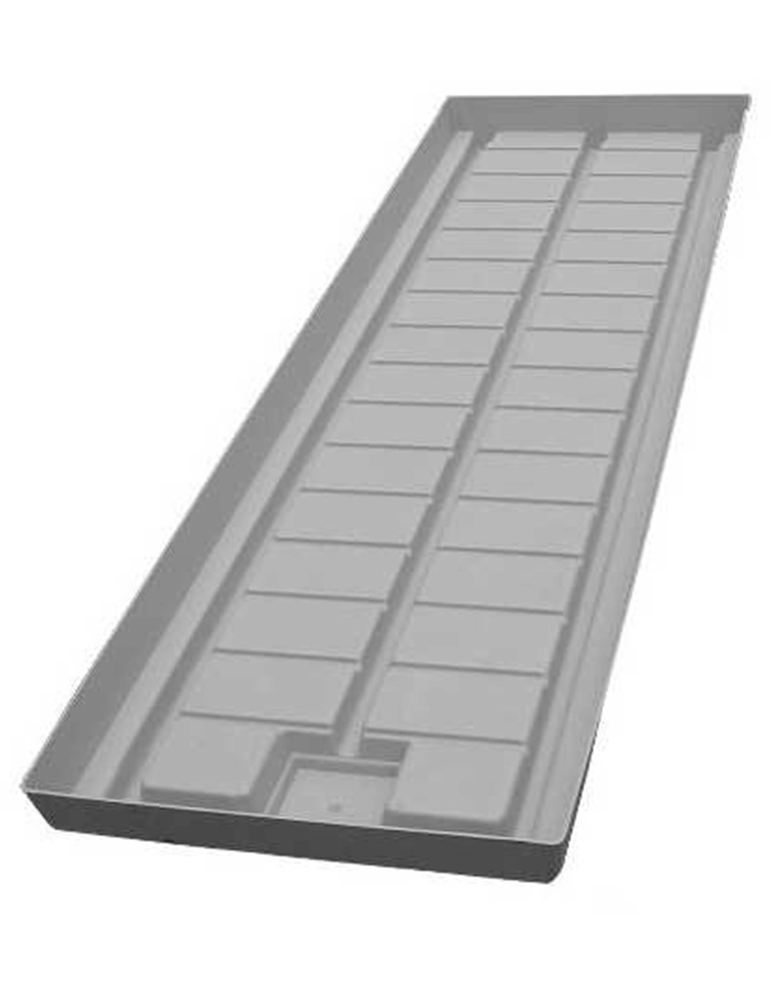 Die Platte ist mit grossen Längskanälen und kleinen Querkanälen ausgestattet. Diese Konstruktion sorgt für eine effiziente Wasserverteilung und eine gute Stabilität auf der festen Platte. Der Tisch ist an seinem Ende mit einem Ablaufventil ausgestattet. Er kann mit Verlängerungen verlängert werden.
