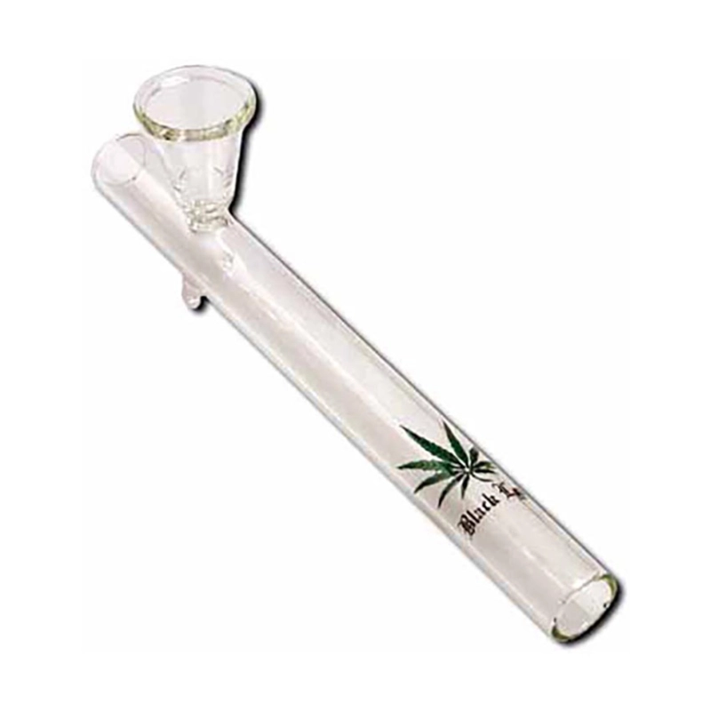 Durchsichtige Glaspfeife,Black Leaf Länge 20 cm.