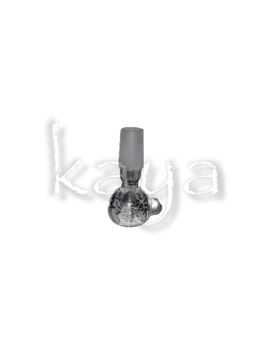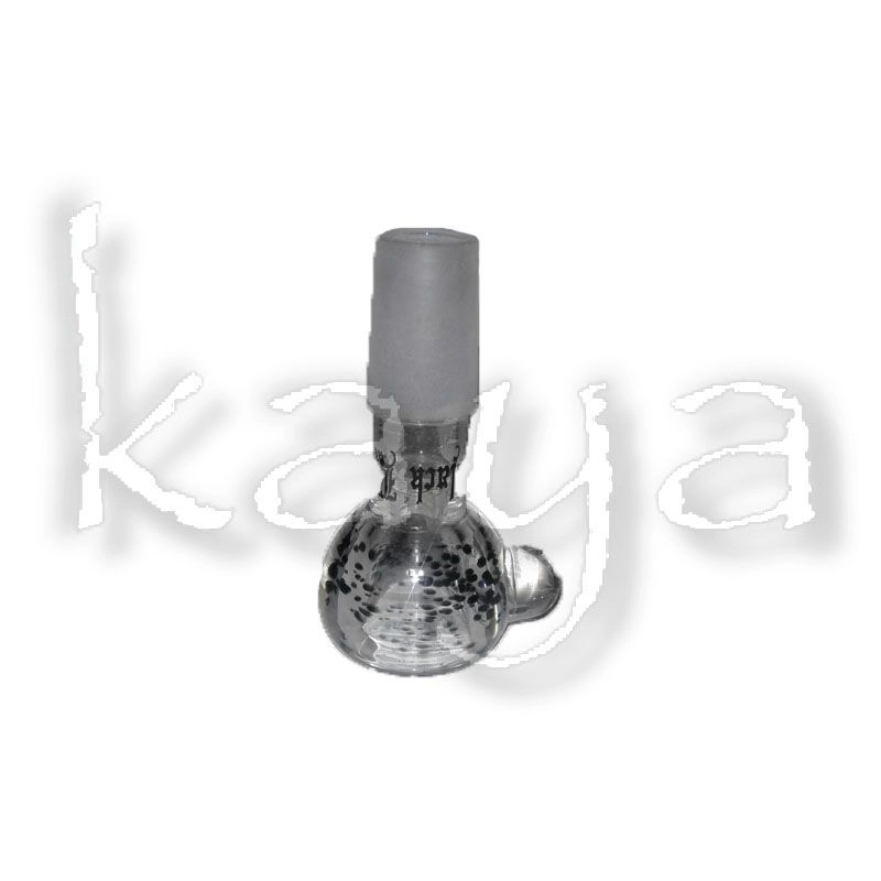 Glaskopf für Bong der Marke Black Leaf in der Farbe Schwarz mit 18mm-Verbindungsstück auf Höhe der sandgestrahlten Partie und 33mm Innen-Durchmesser für den Kopf.