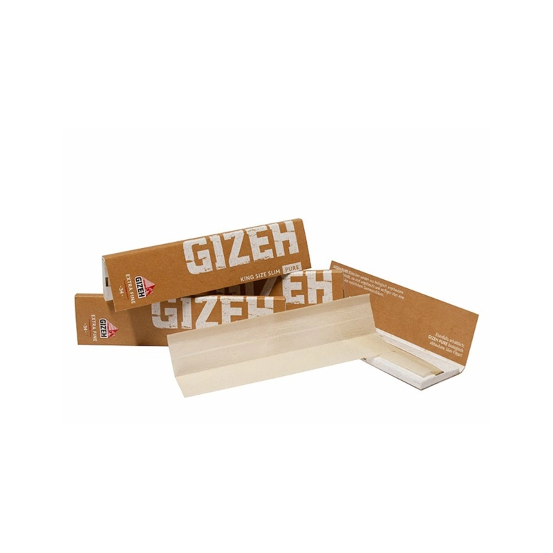 GIZEH PURE EXTRA FINE King Size Slim sind ungebleichte Blättchen aus zertifiziertem, biologisch angebauten Hanf. Das extra feine Papier für puren, unverfälschten Genuss, hat ein Flächengewicht von 14 g/m² und eine natürliche Gummierung aus Gummiarabikum, dem Saft des Akazienbaums.