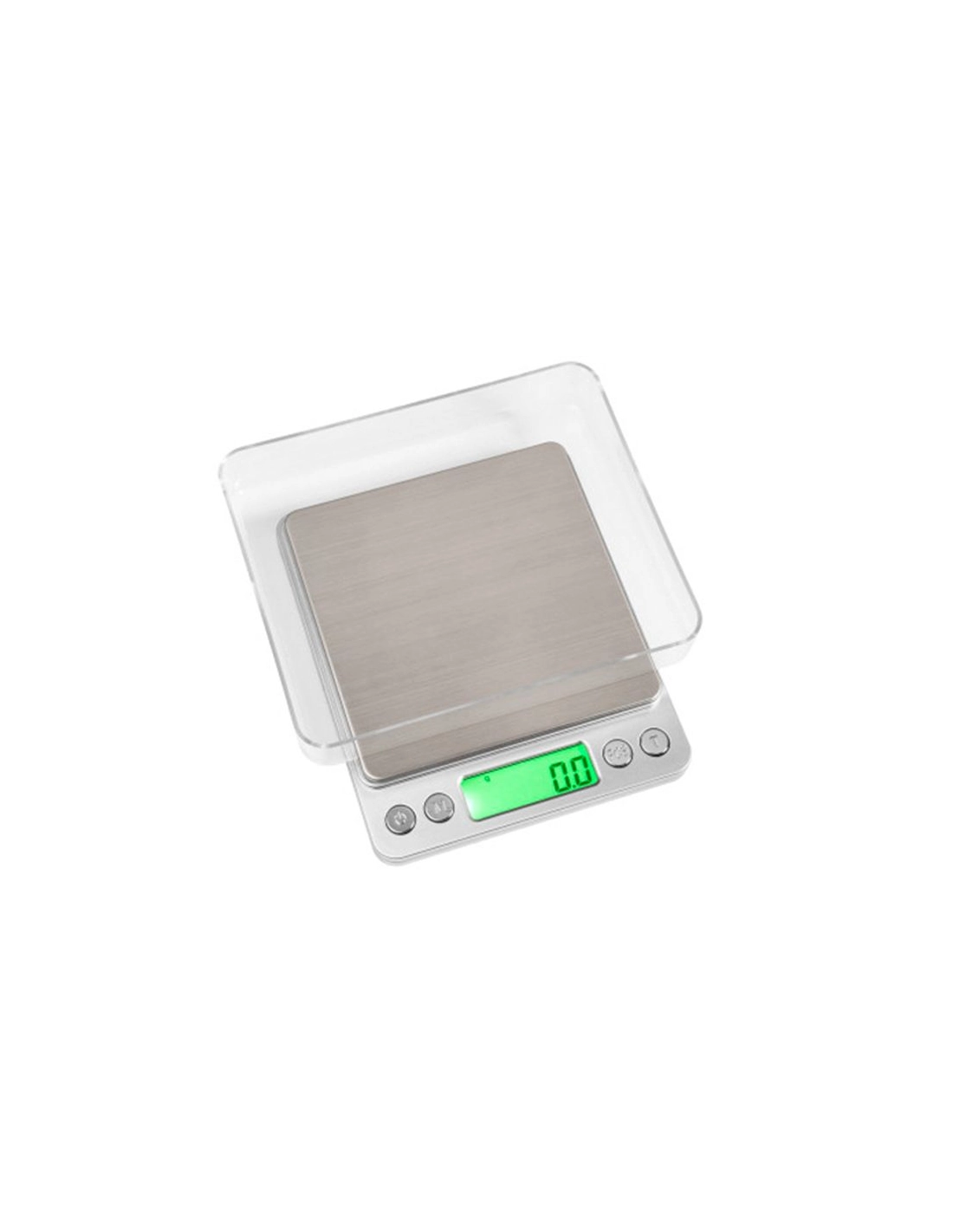 Präzisionswaage mit einer Kapazität von maximal 500 g und einer Genauigkeit von einer Hundertstel Gramm. Abmessungen: 12.5 x 10.4 x 1.9 cm