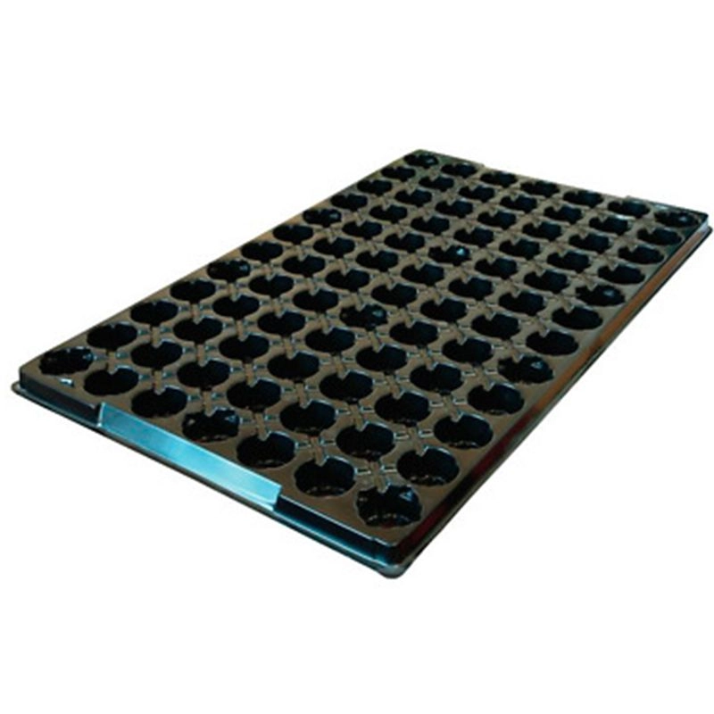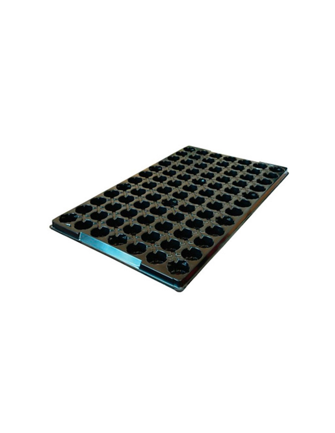 Schwarze Kunststoffschale für 84 Jiffys à 33 mm. Die Jiffy Pads à 33 mm sind Kokosnusssubstrat-Tabs, die zum Umpflanzen von Wurzelstecklingen und Sämlingen verwendet werden (Jiffys nicht inklusive).
