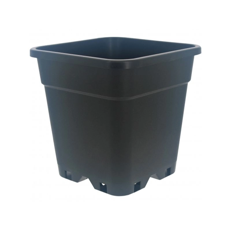 Quadratische schwarze Kunststoffbehälter mit einem Fassungsvermögen von 14L.