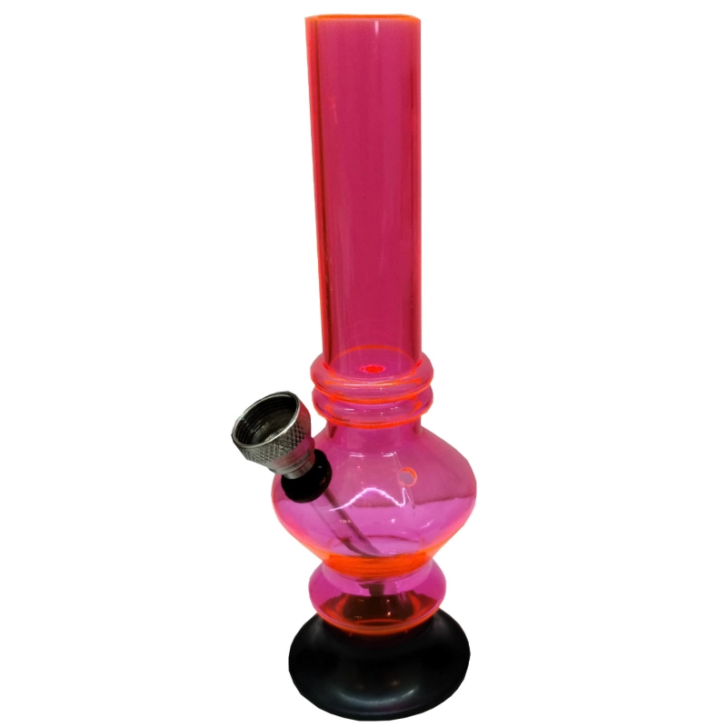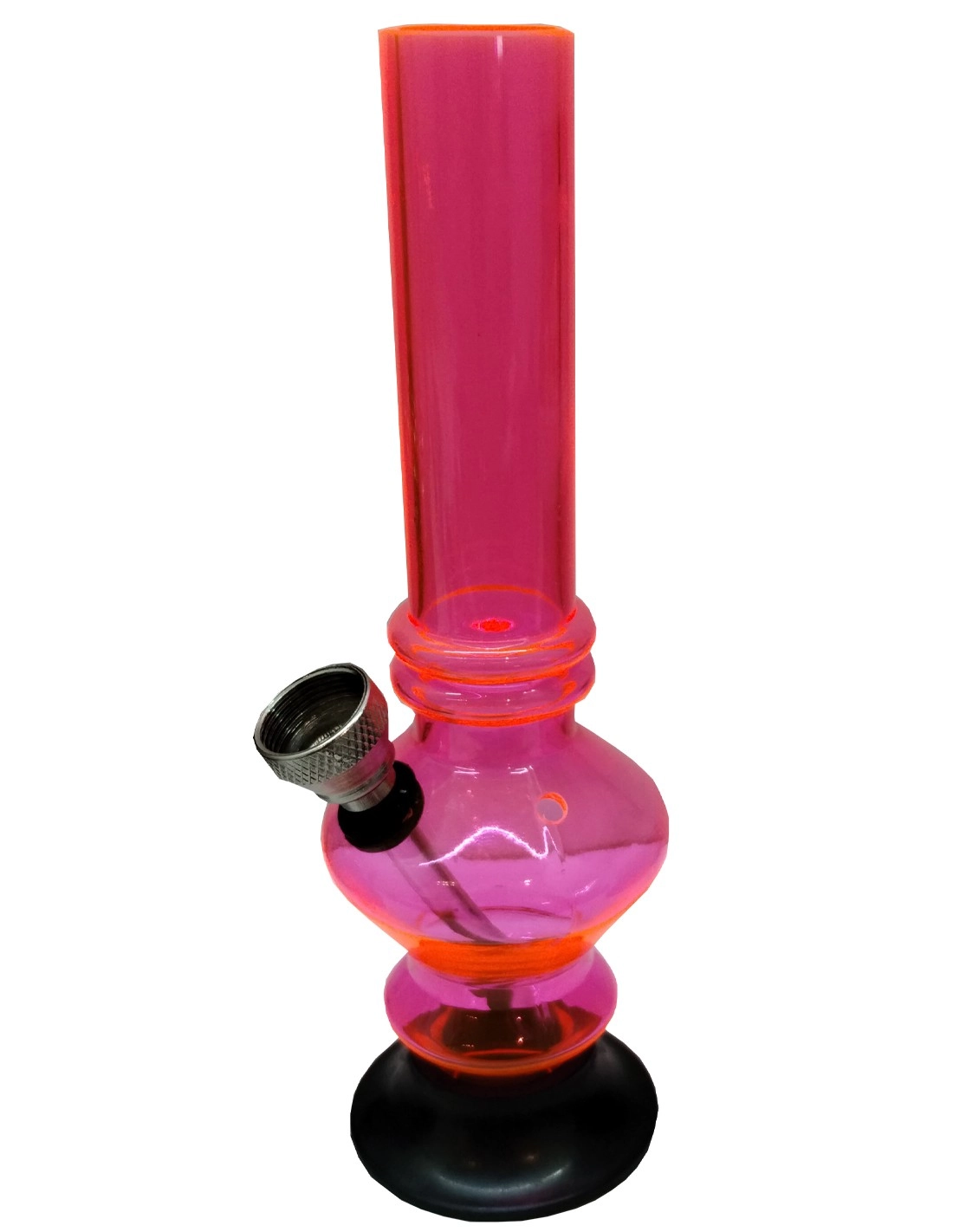 Diese kleinen Mini Acrylbongs sind super klein und handlich...passt somit in jede Handtasche. Sie haben ein Metallshillum mit Schraubkopf, ein kleines Kickloch sowie einen Gummifuß für einen rutschfesten, stabilen Stand.