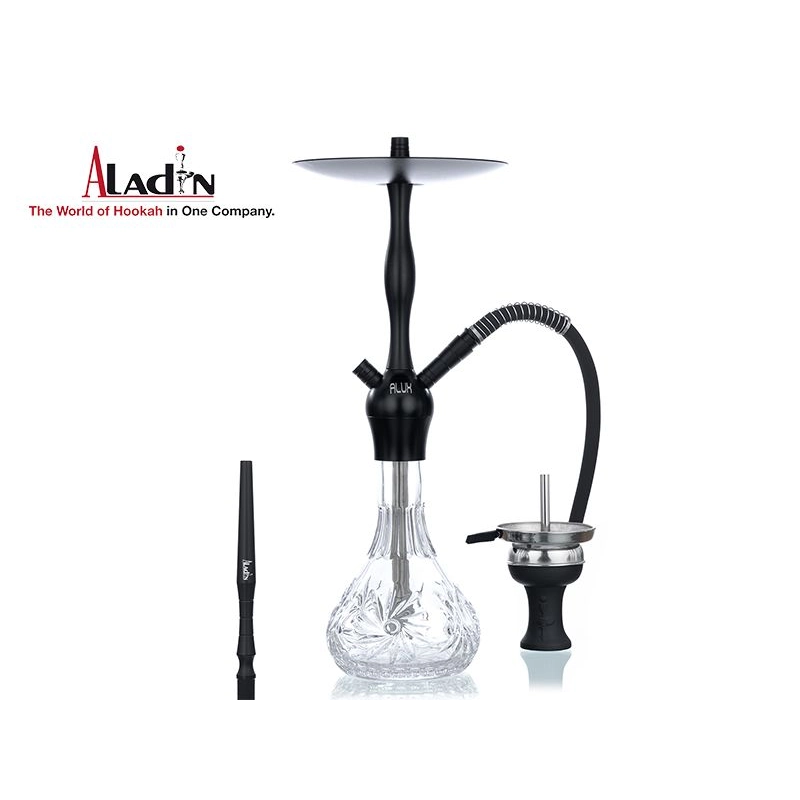 Die Aladin Alux Admiral Shisha ist aus Aluminium hergestellt und eine reine 1-Schlauch Shisha. Die Base der Alux Admiral Wasserpfeife hat ein Closed-Chamber-System und wird per Klickverschluss auf die Bowl montiert. Die Shisha hat einen Schlauchanschluss mit Schliff, ein passender Adapter für den Silikonschlauch ist im Lieferumfang mit dabei.