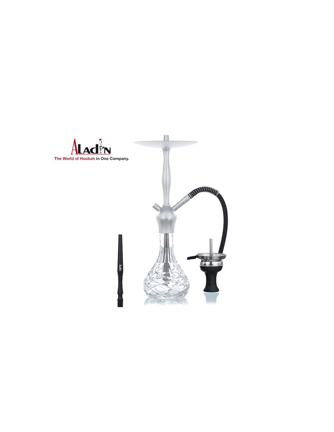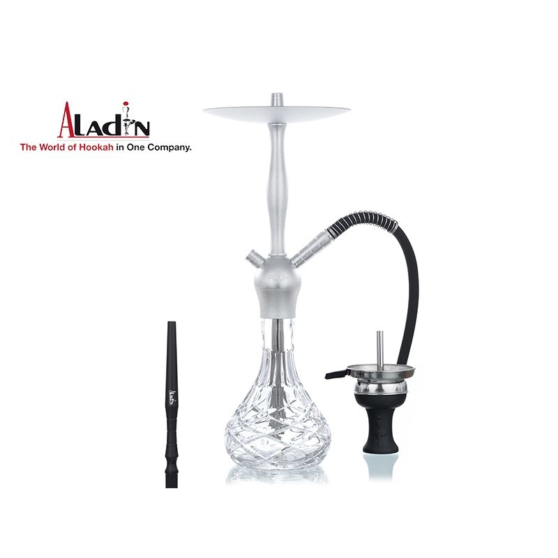 Die Aladin Alux Admiral Shisha ist aus Aluminium hergestellt und eine reine 1-Schlauch Shisha. Die Base der Alux Admiral Wasserpfeife hat ein Closed-Chamber-System und wird per Klickverschluss auf die Bowl montiert. Die Shisha hat einen Schlauchanschluss mit Schliff, ein passender Adapter für den Silikonschlauch ist im Lieferumfang mit dabei.