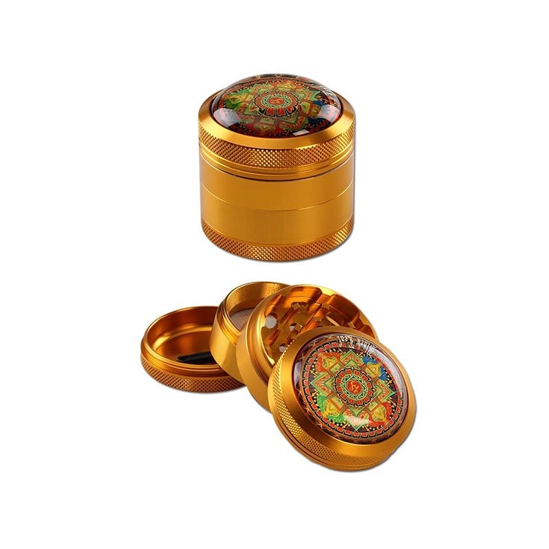 Der 4-teilige Grinder von Black Leaf® ist aus eloxiertem Aerospace-Aluminium. Im Deckel befindet sich ein bezauberndes Mandala-Motiv, welches durch die Glaskuppel sehr plastisch wirkt.
