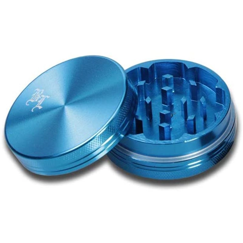 Grinder CNC Ø 50mm, 2 Teile aus eloxiertem Himmelblau Metall, magnetisch.