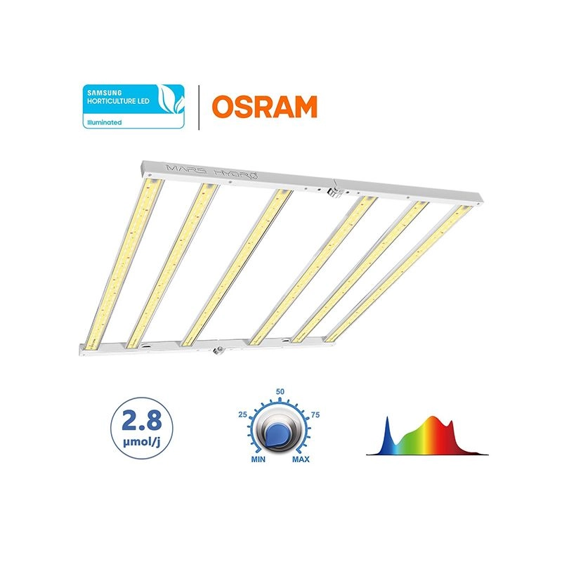 Die neuen Mars Hydro-Panels bestehen aus Samsung LM301- und Osram 660nm-Chips. Sie sind auf dem Markt der Gartenbau-LEDs bekannt für ihre hohe Effizienz von bis zu 2,8 µmol/J.